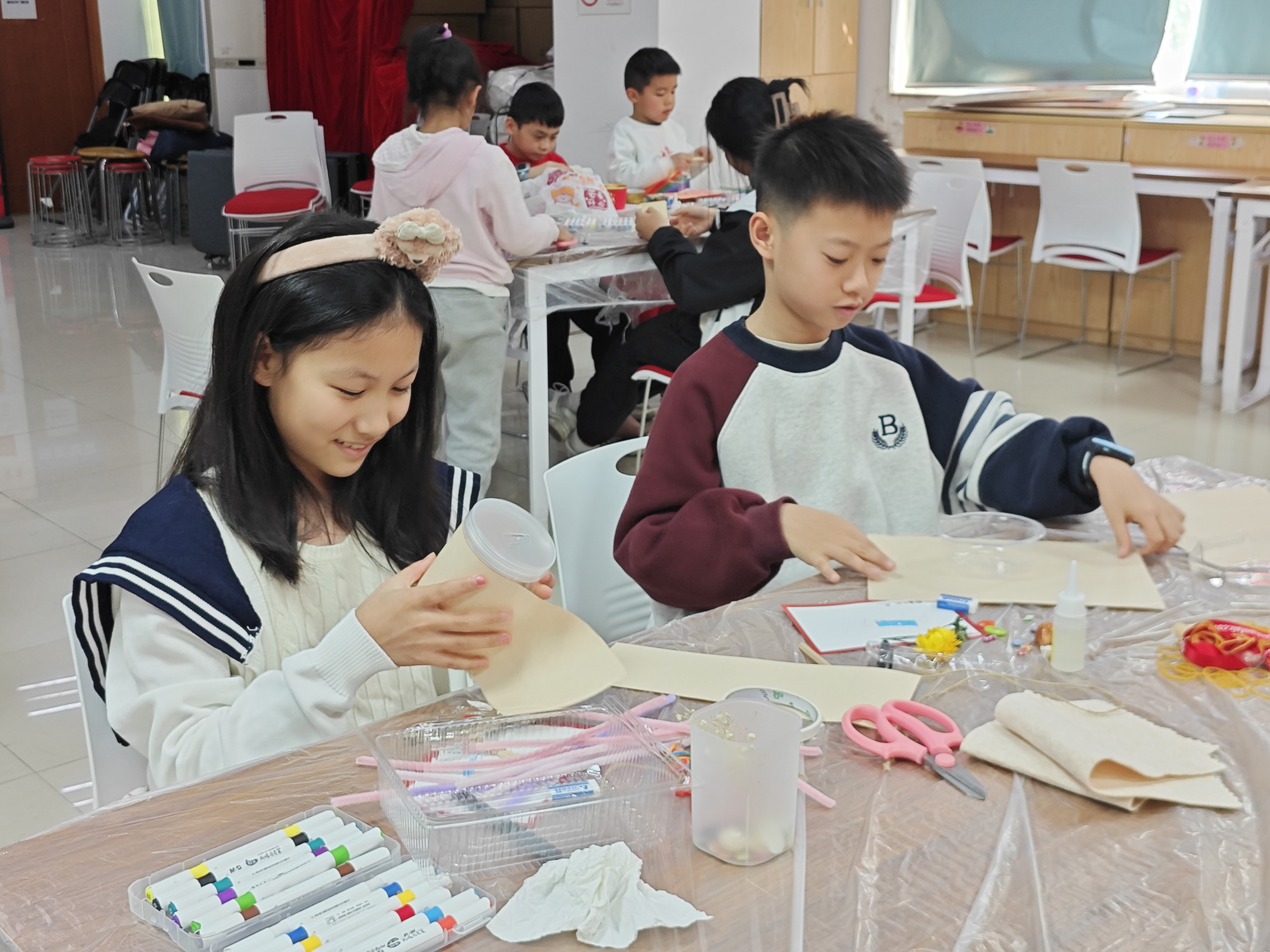 在手工制作过程中,孩子们全神贯注,充分发挥自己的创意和动手能力。有的孩子用废弃的盒子制作出了精美的手提包,有的孩子用扭扭棒塑造出了一幅美丽的画,还有的孩子利用废旧物品变废为宝,制作出了独特的小摆件......孩子们的作品不仅造型精美,还充满了奇思妙想,展现出了他们丰富的想象力和创造力。
