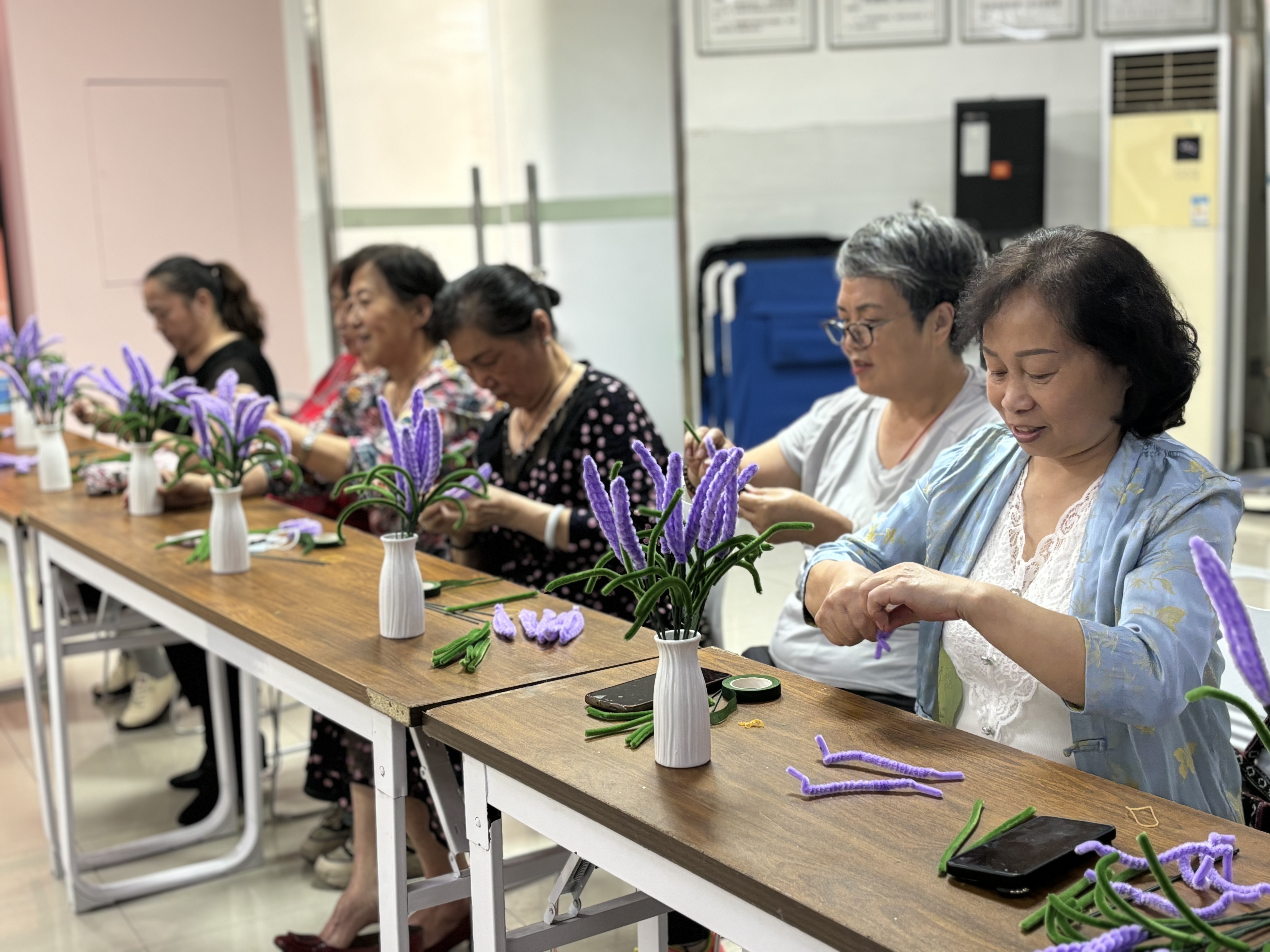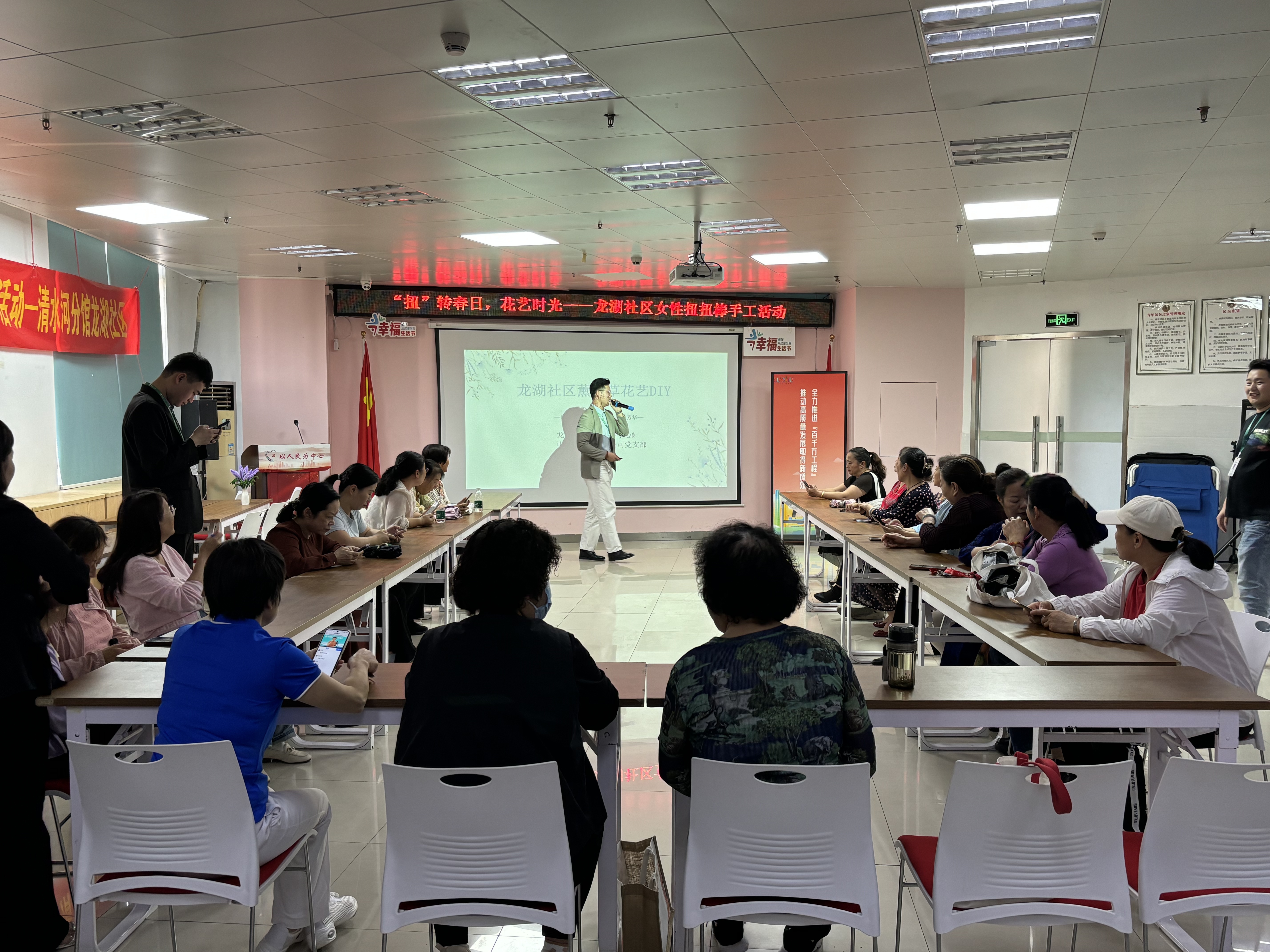 为丰富社区女性居民精神文化生活,提升艺术审美情趣,2025年4月15日下午,龙湖社区党群服务中心社工团队携手中国人寿金田支部共同举办“扭”转春日,花艺时光——女性扭扭棒手工活动,吸引24名社区女性积极参与,在春日午后共赴一场指尖与创意的邂逅。
