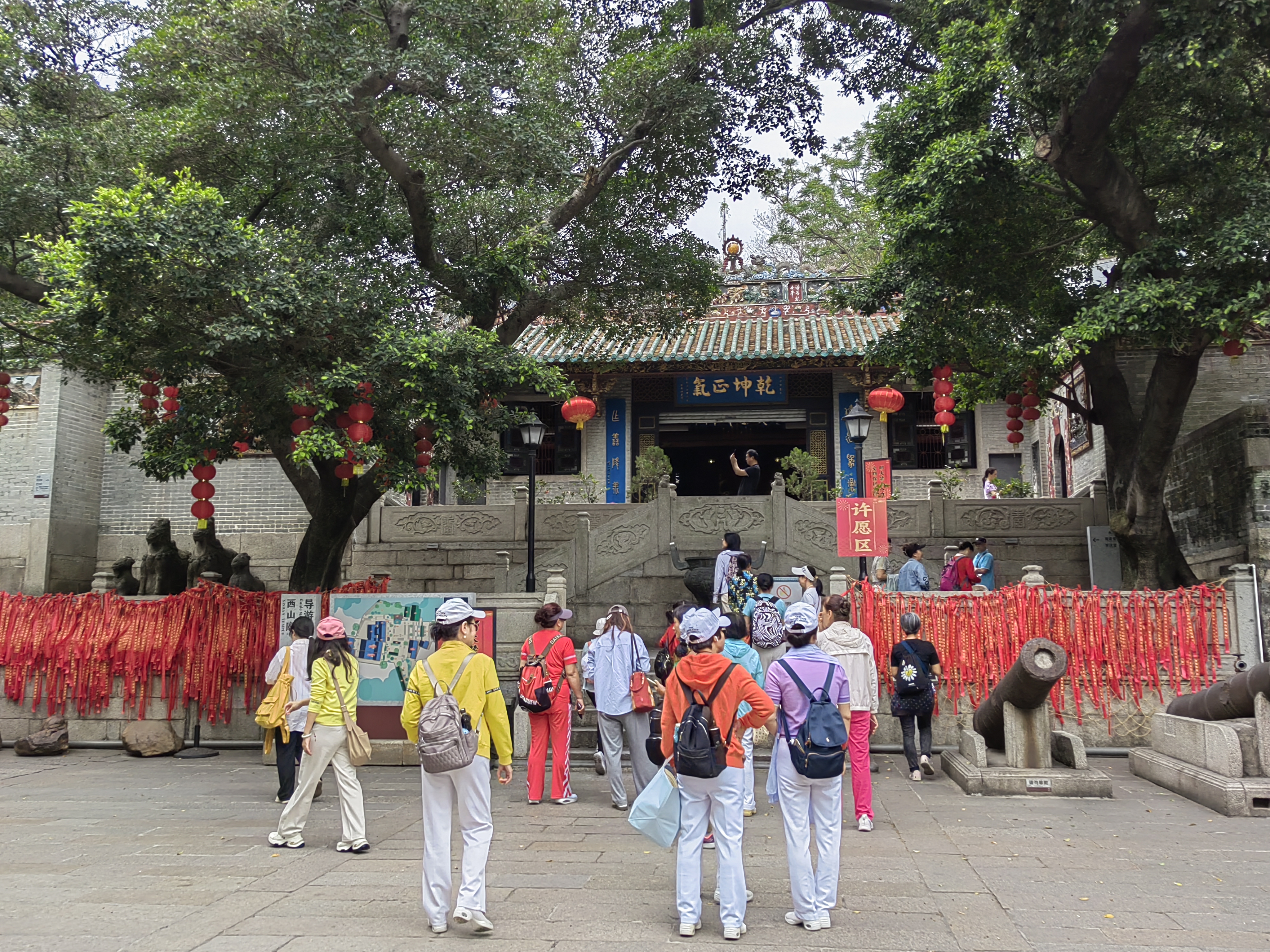 首站抵达始建于明代的佛山西山庙,百年榕树掩映下的古建筑群让居民们沉浸于历史厚重感中。社工特别设计的“古庙寻春”互动任务,引导居民在雕花窗棂、青砖黛瓦间寻觅春意。65岁的陈叔边记录任务卡边感慨:“这些岭南特色的镬耳墙、灰塑,让我想起小时候的老街坊,都是文化的根啊!”午餐时段,导游以桌上美食为媒,将味觉体验升华为文化课堂。居民们听得入神,纷纷表示“吃的是美食,品的是故事”。