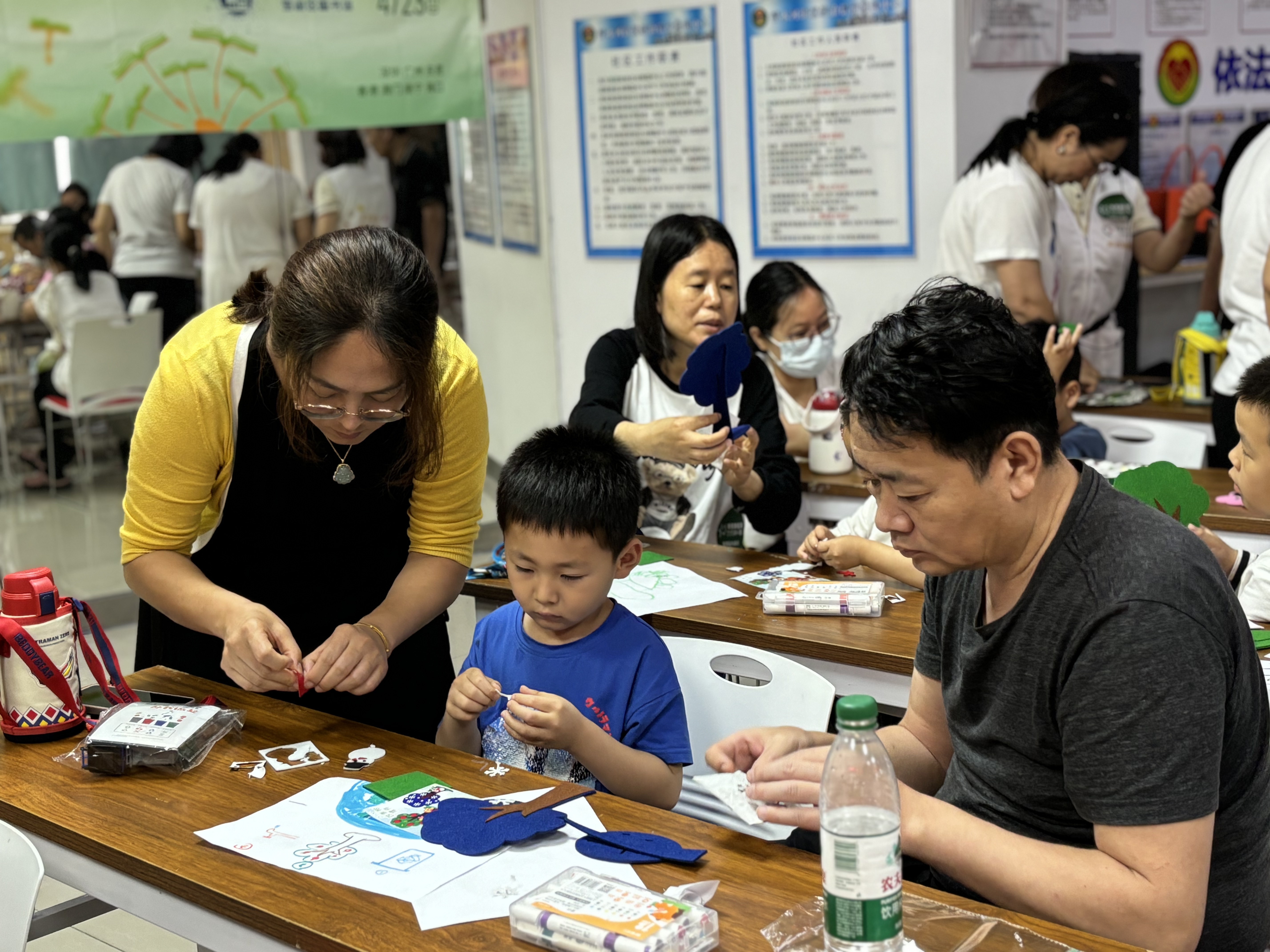 为深化活动主题,现场还设置了“四季树DIY”亲子手工环节。家长与孩子共同用环保材料制作象征生命力的四季树,通过剪贴、涂鸦等步骤,将废弃纸板变为充满童趣的艺术品。一位家长表示:“和孩子一起动手做手工,不仅增进了感情,更让我们意识到环保可以从身边小事做起。”