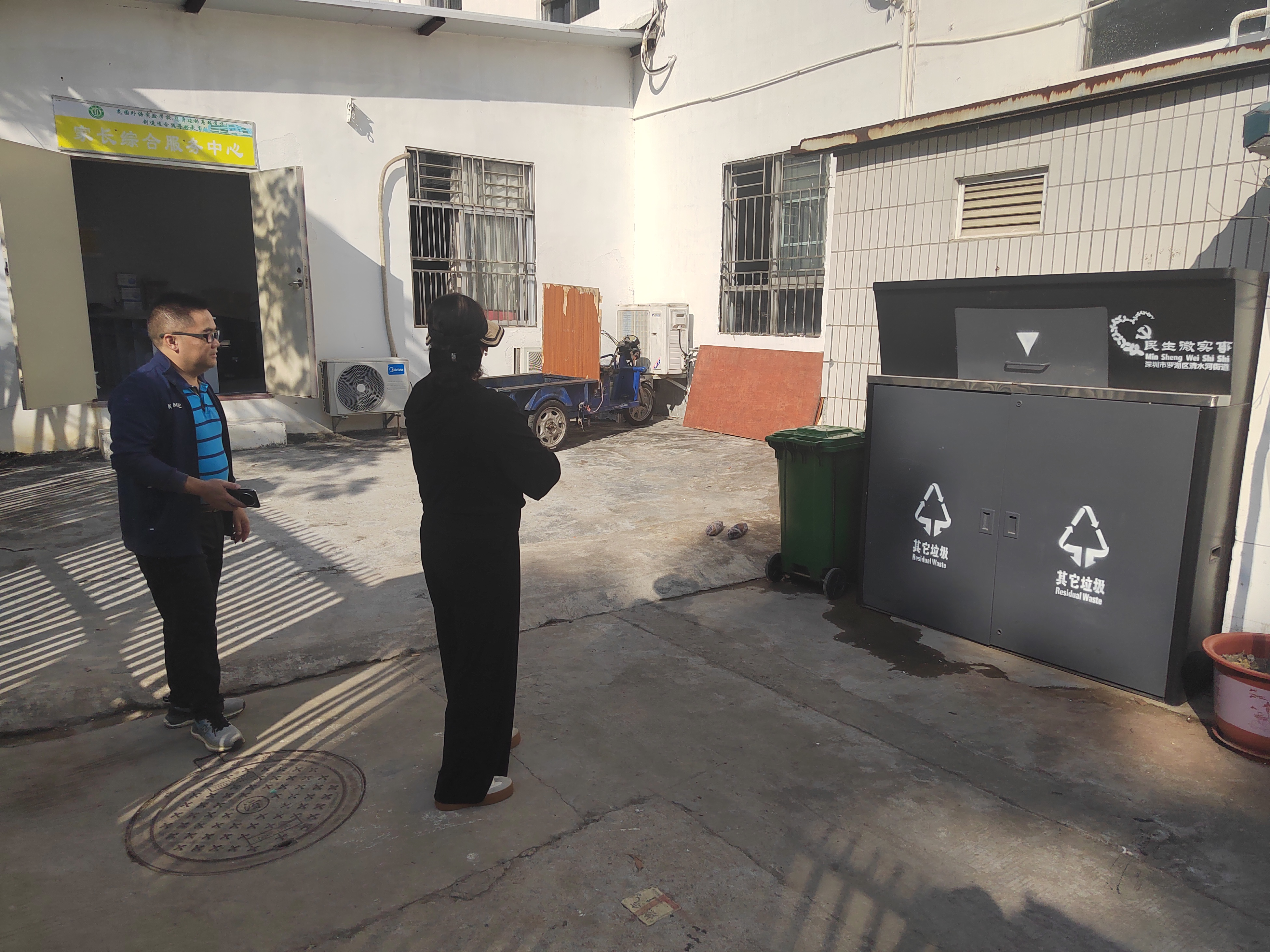 龙湖社区协调幼儿园和学校垃圾桶事宜