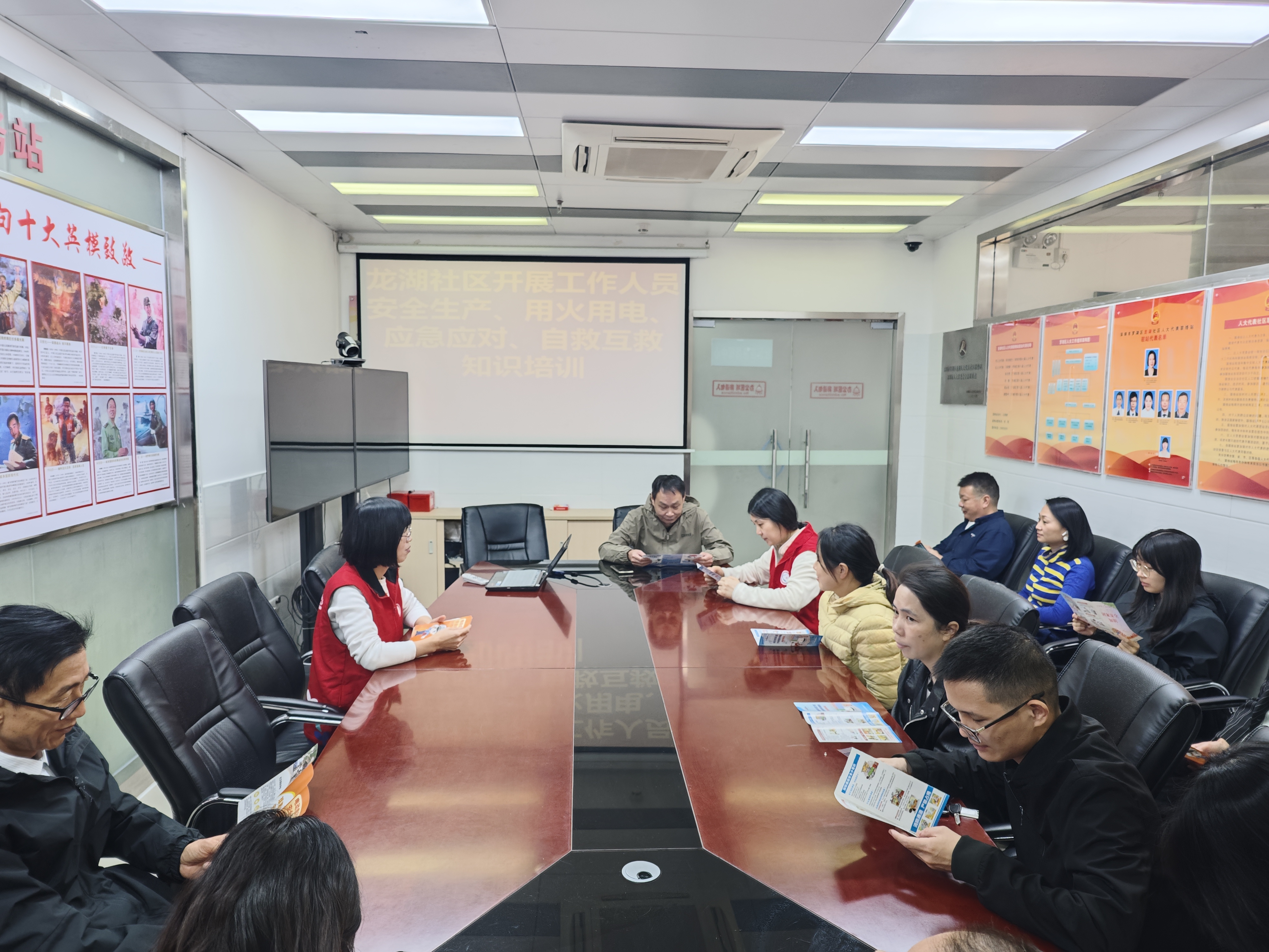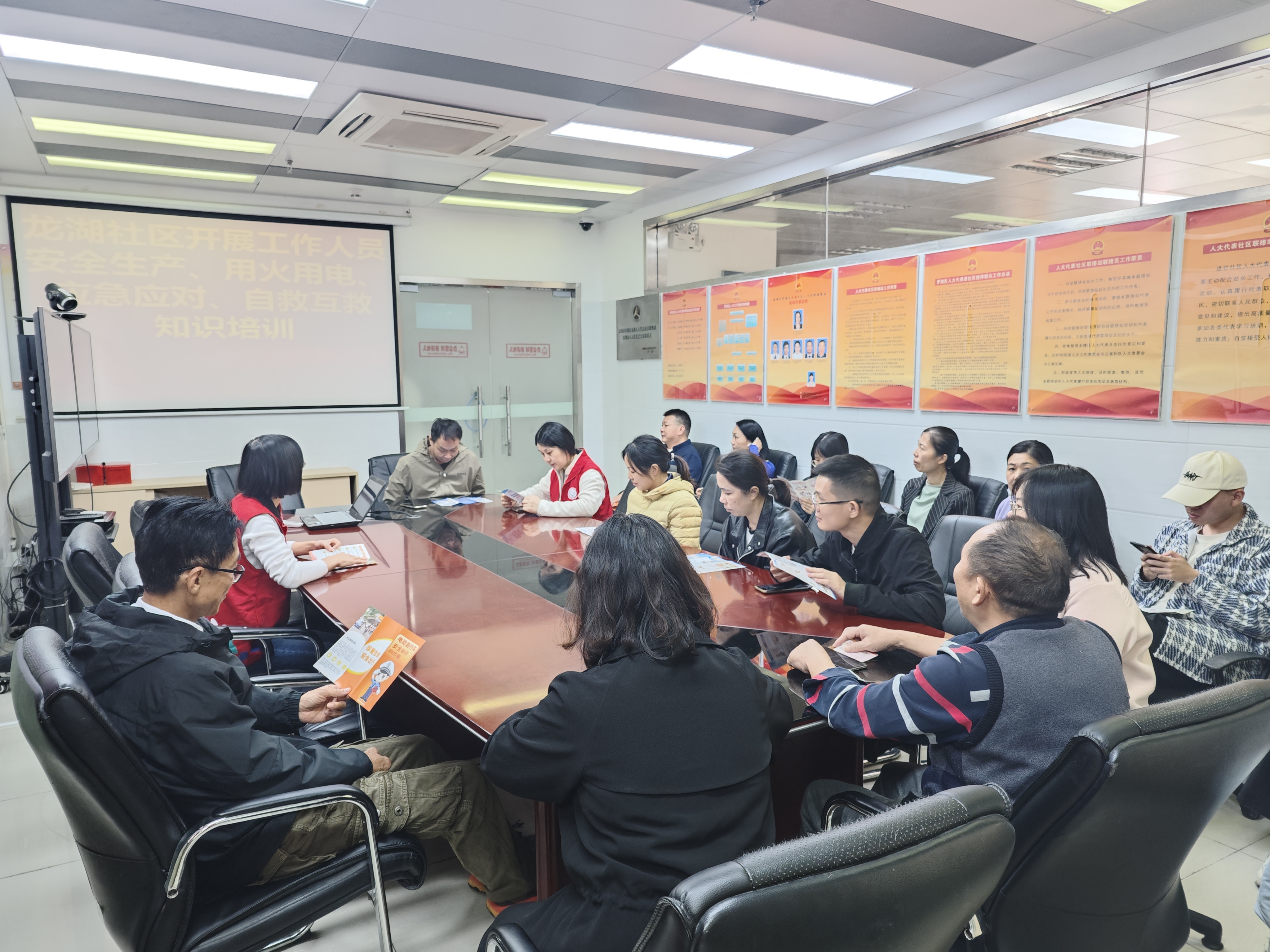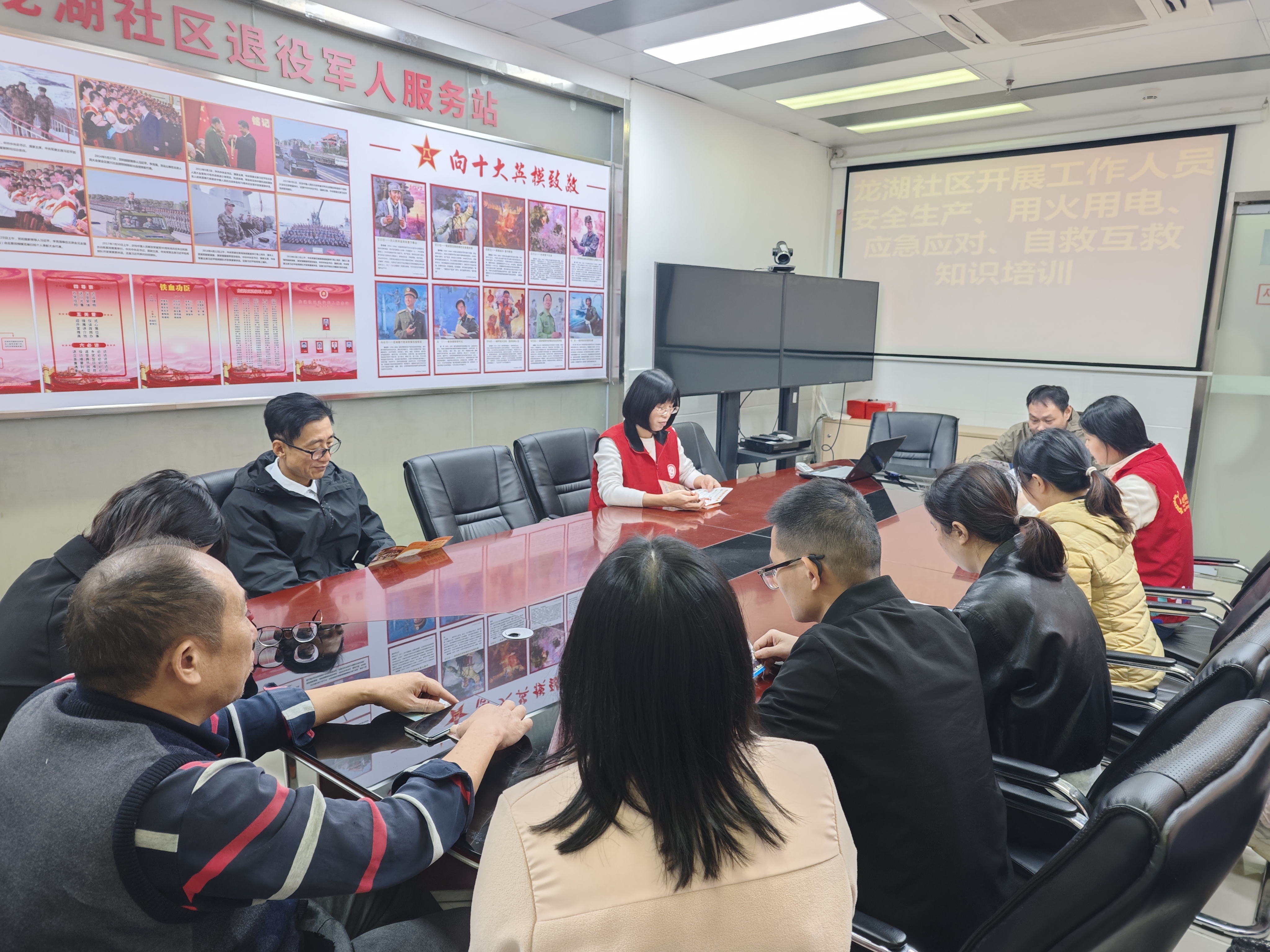 龙湖社区召开工作人员安全生产、用火用电、应急应对、自救互救知识培训
