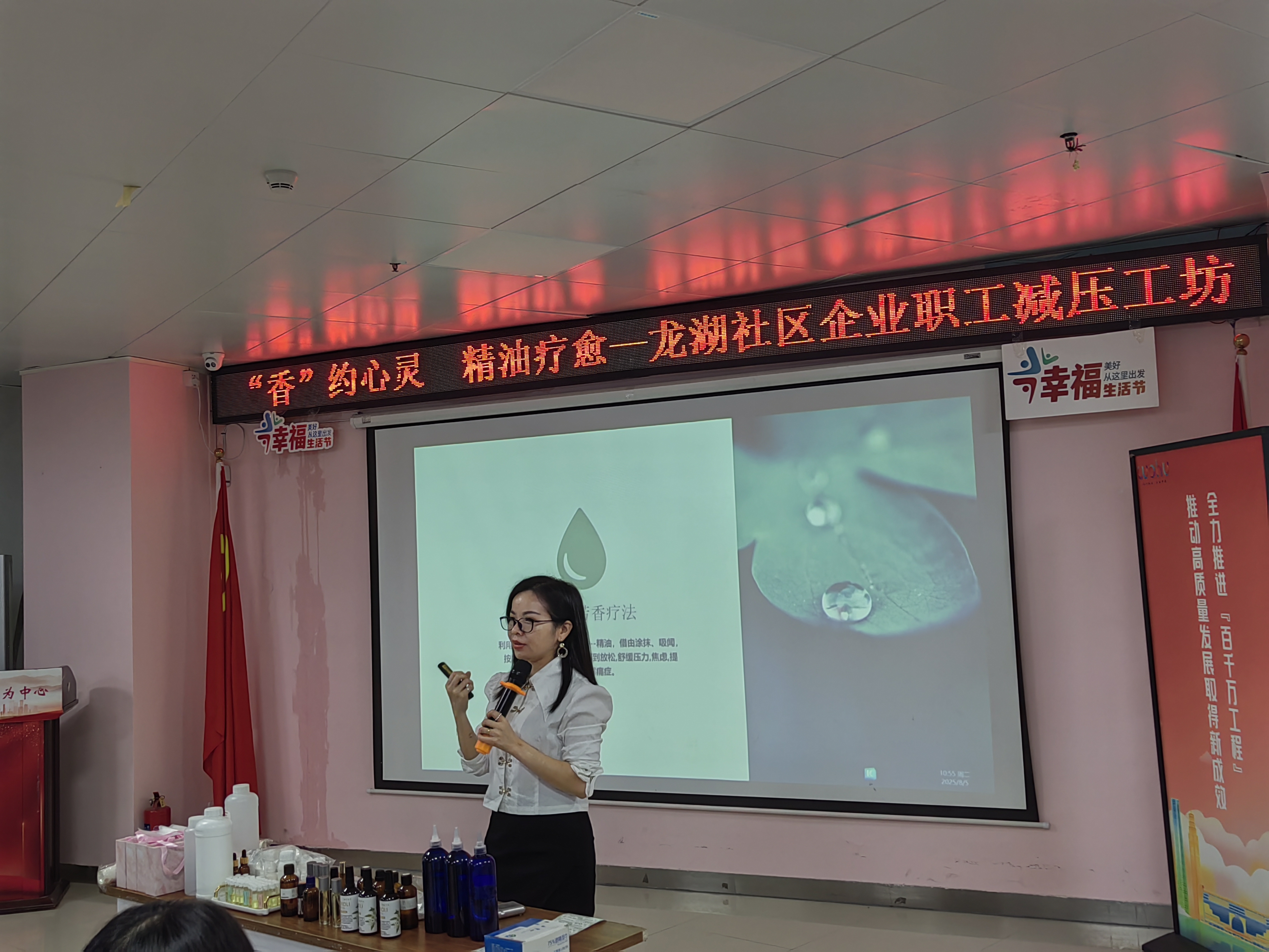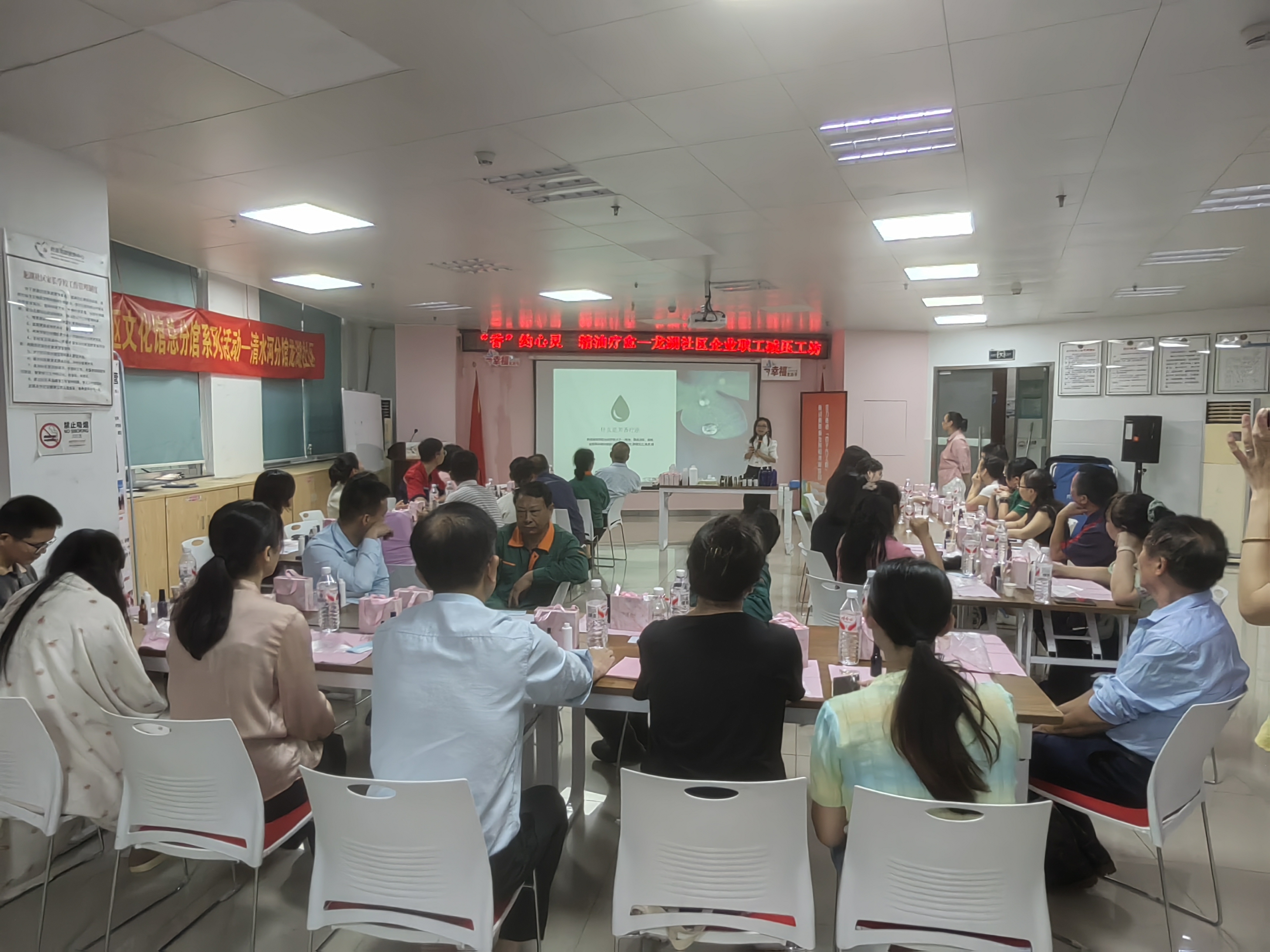 为缓解辖区企业职工工作压力,帮助大家更好地认识自我、调节情绪,提升心理健康素养,罗湖区清水河街道龙湖社区工联会于2025年8月5日下午开展了“香”约心灵,精油疗愈——社区企业职工减压工坊活动,共吸引了35位辖区企业职工参与。