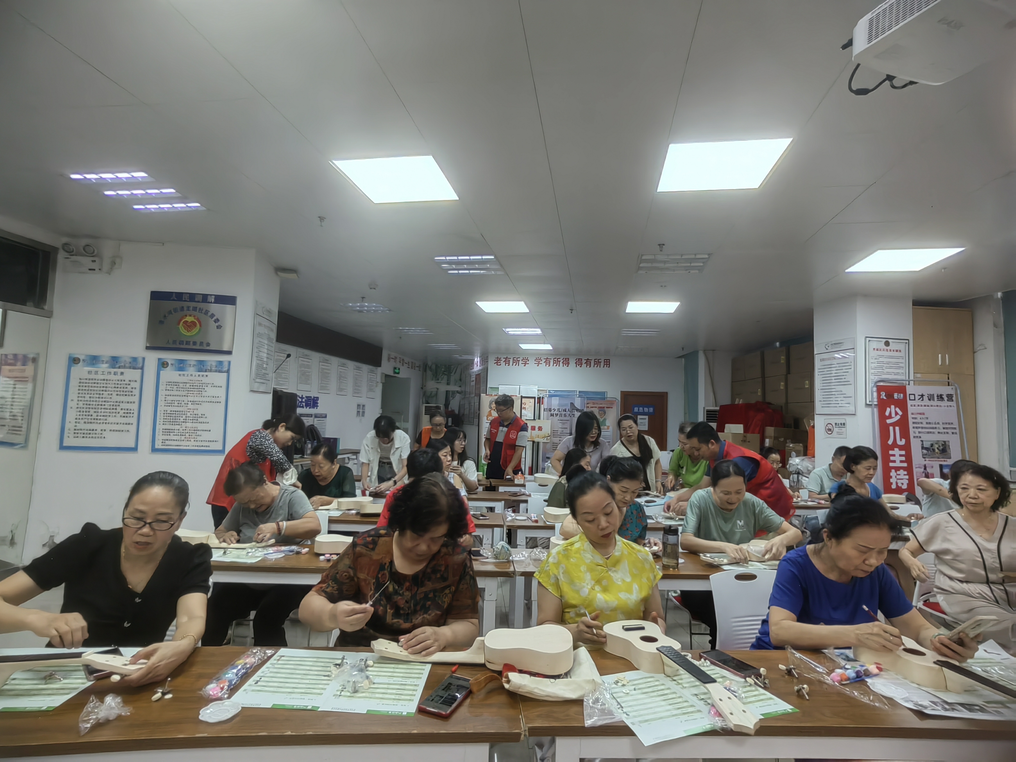 为营造良好的社区文化底蕴,增强社区居民的凝聚力,2025年9月3日下午,罗湖区清水河街道龙湖社区携手中国平安保险公司深圳分公司共同开展了“幸福‘尤’你 乐动心弦”尤克里里DIY活动,共吸引了30位居民参与。