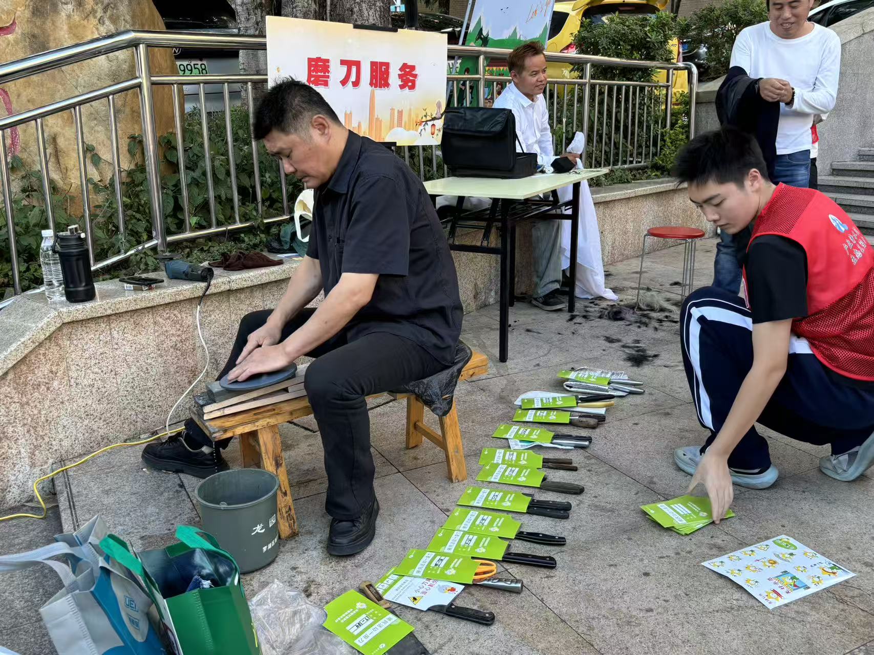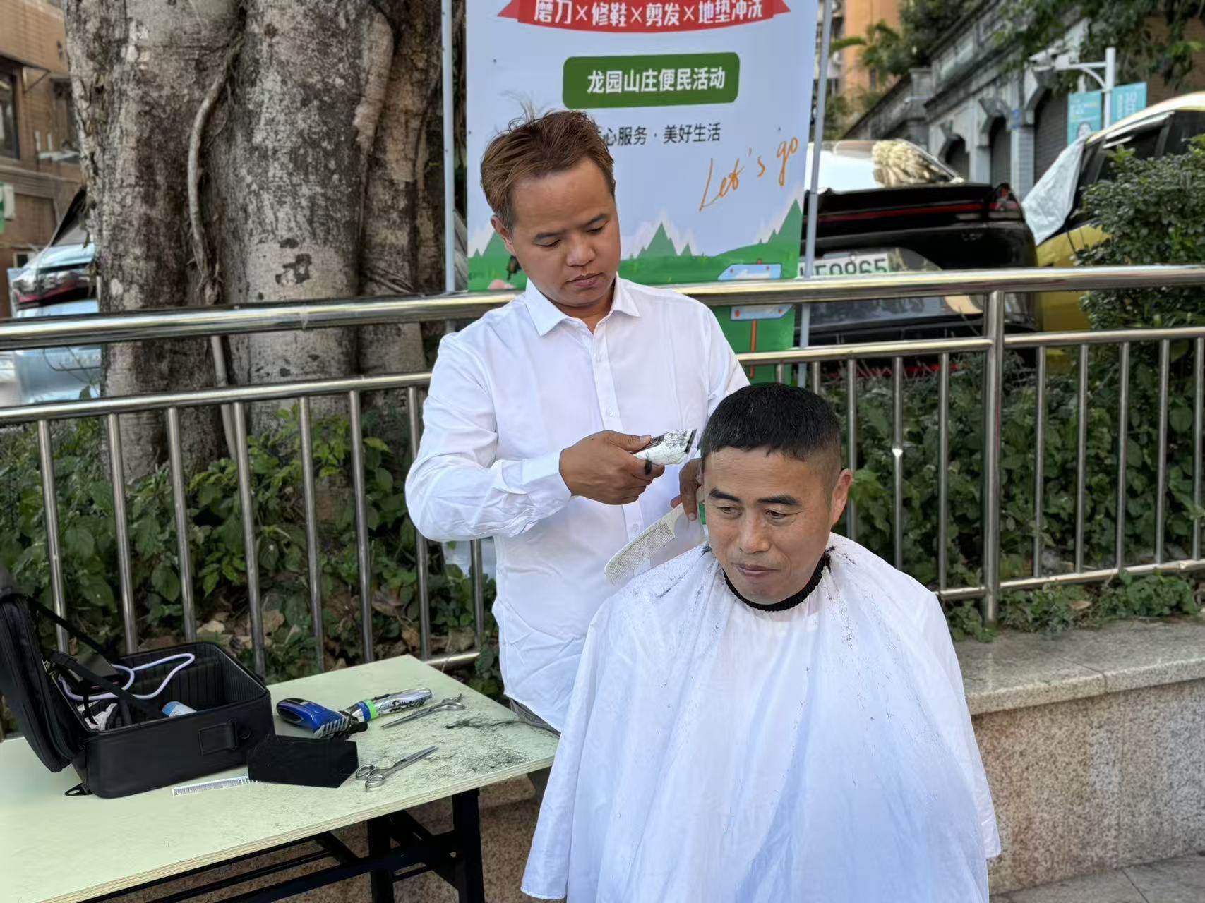 便民服务专区同样人气高涨,成为老年居民的“心头好”。免费的磨刀、理发、补衣服三个服务摊位前,居民们在志愿者、社工的指挥下,有序排队。各位师傅精湛的手艺,收获了居民们的一致好评。健康义诊为居民提供口腔检查、全身健康检测服务,针对相关问题耐心解答,提供饮食调理、用药指导等专业建议。禁毒宣传则通过趣味互动、展示等形式,向居民普及禁毒相关知识。此外,商家特惠区和移动电信福利区也吸引了不少居民驻足。