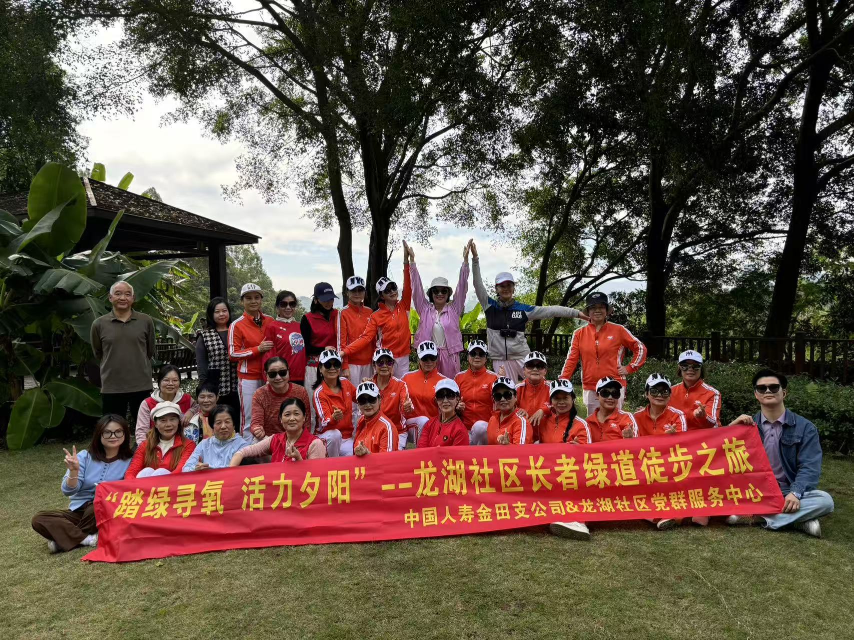 为进一步丰富社区长者的精神文化生活,倡导绿色健康的生活方式,2025年11月27日,罗湖区清水河街道龙湖社区携手中国人寿保险股份有限公司深圳分公司金田支公司共同开展踏绿寻氧,活力夕阳——长者绿道徒步之旅活动,共有30位社区长者沉浸式体验徒步乐趣,定格美好时光。