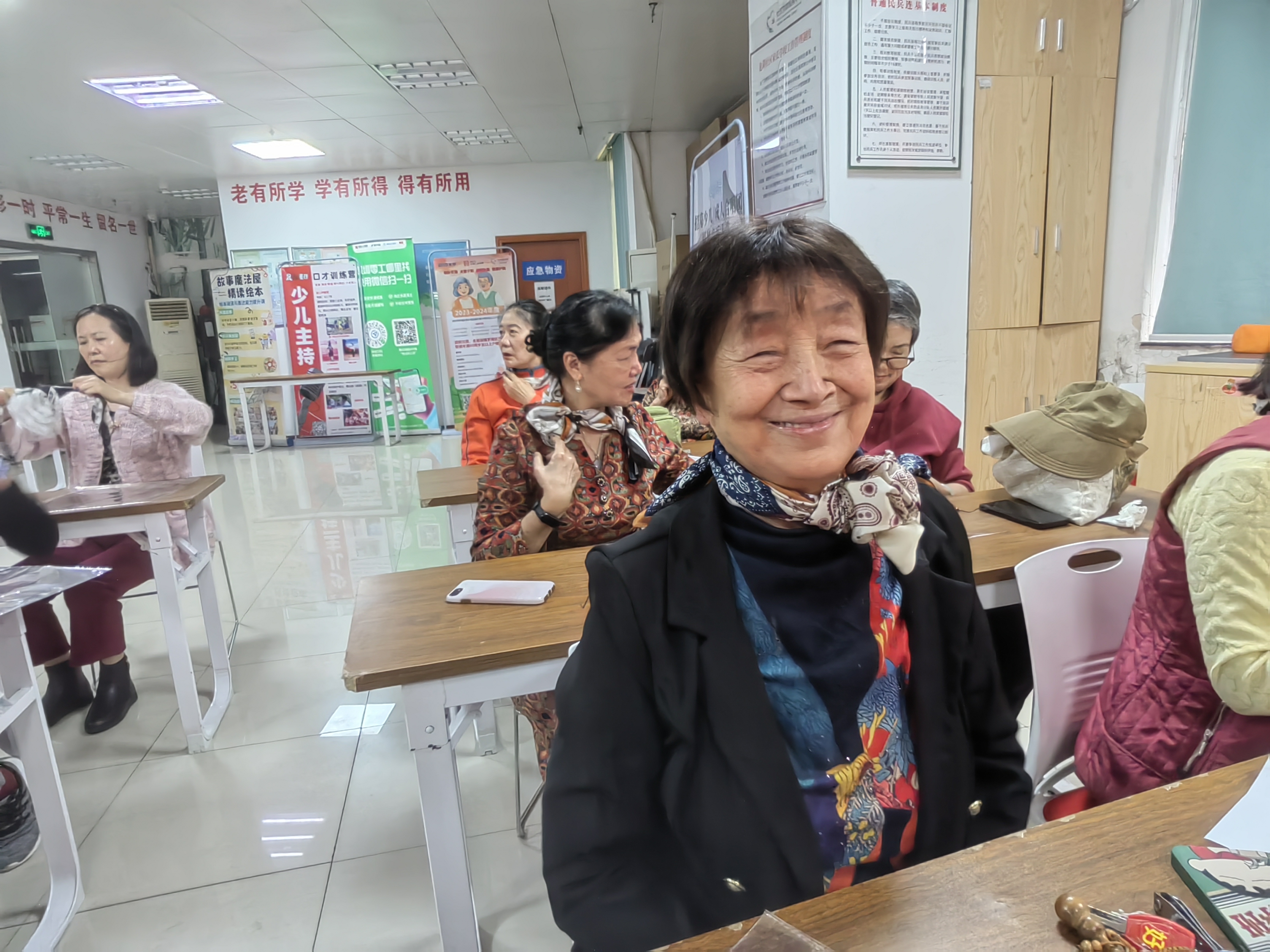 活动现场气氛热烈而温馨。社工提前给大家送上了新年的节日祝福,带领大家了解了元旦的来历和习俗,并给大家准备了色彩各异、款式多样的丝巾。随后老师给大家分享了丝巾的搭配原则及搭配技巧,示范了多种实用又美观的丝巾系法:从经典优雅的蝴蝶结、端庄大气的方巾结,到时尚灵动的玫瑰结,再到适合不同领口、肩型的创意系法……每一种系法,老师都讲解得细致入微。居民们听得聚精会神,纷纷拿起丝巾,跟随老师的步骤认真实践。大家时而低头琢磨,时而相互请教,时而互相帮忙调整,平平无奇的丝巾在大家的巧手下,仿佛被赋予了生命,变幻出各种造型。