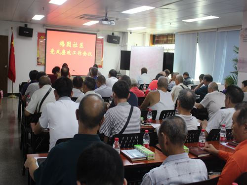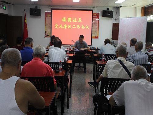 9月25日上午,梅园社区召开党风廉政会议,学习《中国共产党问责条例》,社区党委委员、辖下24个支部委员会近70人参加了会议,会议由社区党委书记曾建辉主持。
