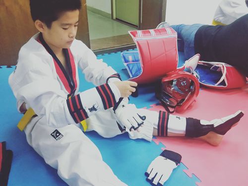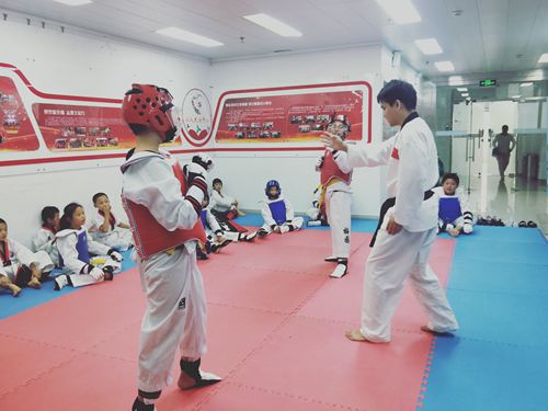 在正式授课前,教练带领全体学员回顾了太极一章的内容和复习腿法品势。让黄带学员练习穿戴护具,练习踢护具的脚感,并加强黄带班的学员进行实战演练,希望学员们通过实战熟悉所学的招式。