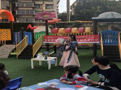 首先,深圳市德义爱心促进会的Ruby老师身穿汉服,带给15对亲子一份惊喜。接着,社工和大家分享元旦节的来历,并邀请家长和小朋友分享她们双旦节打算怎么过,孩子们积极主动的与社工互动,现场气氛活跃。
