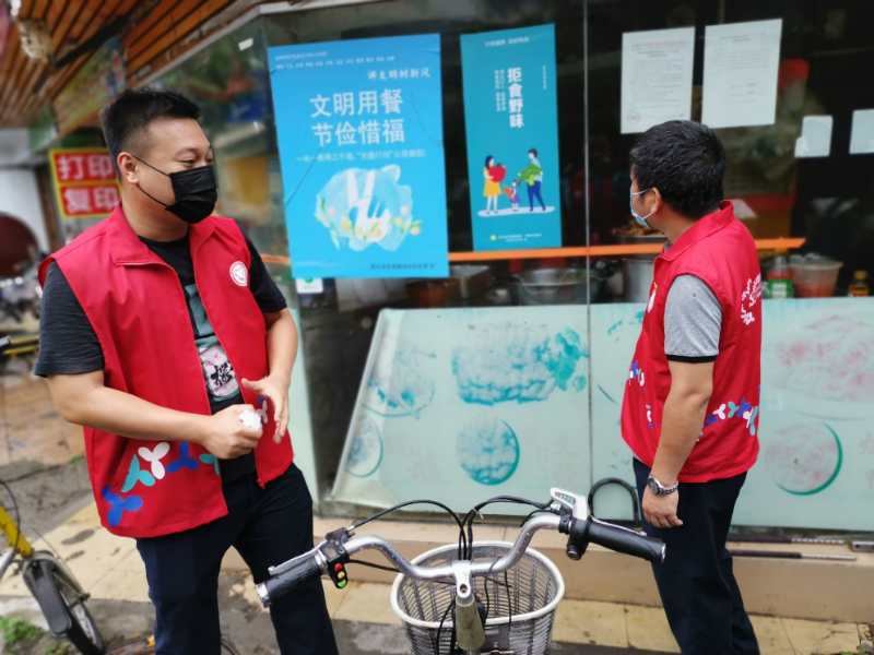 梅园社区安排工作人员在辖区餐馆内张贴“拒食野味、使用公筷”宣传海报