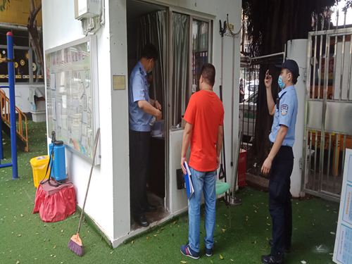 新学期开学之际,为确保辖区内的幼儿在疫情期间正常开学,6月1日下午,梅园社区党委书记曾建辉带领社区三位一体防控小组人员对一建幼儿园进行全面细致的学前防疫安全检查。