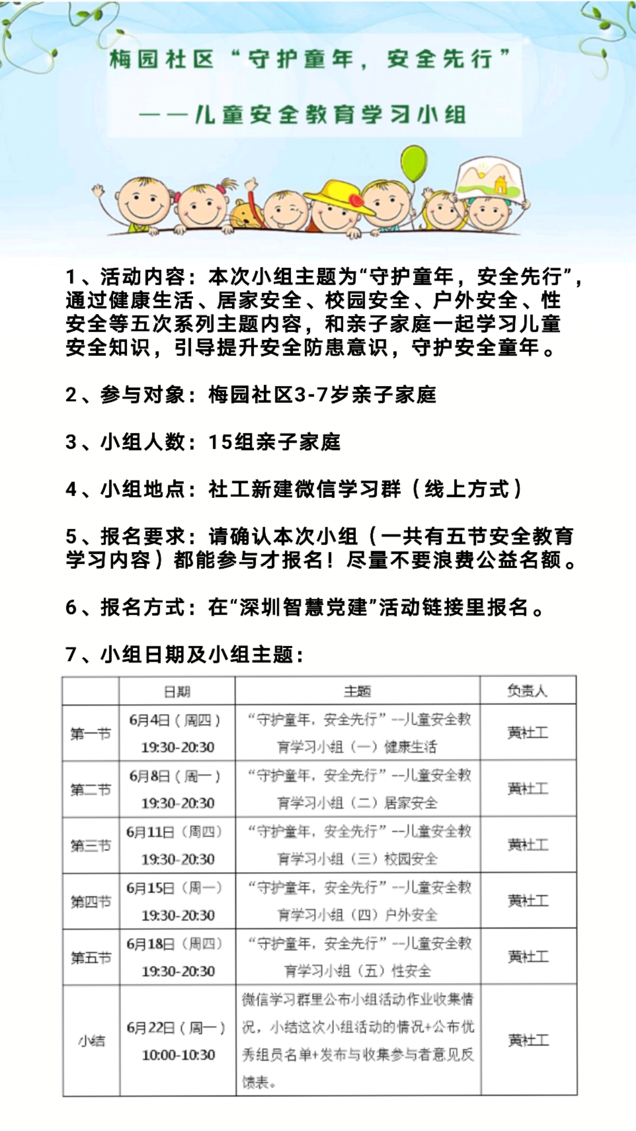 梅园社区“守护童年,安全先行”儿童安全教育学习小组正火热招募中