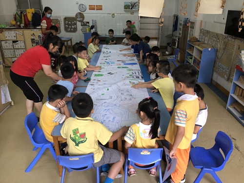 梅园社区萌娃看红色电影传承革命精神,用画笔为“创文”加油呐喊