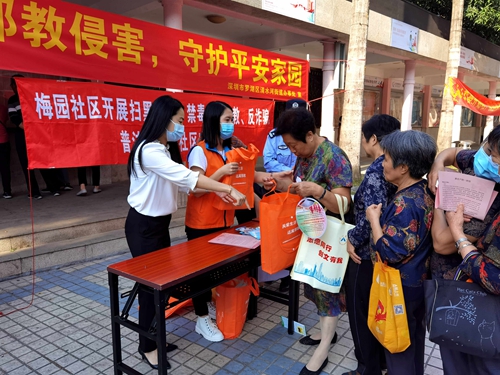 为切实加大禁毒宣传力度,10月27日下午,梅园社区党委副书记陈秋珊带领社区禁毒社工及警务室工作人员在文体活动广场开展了一场禁毒宣传活动。
