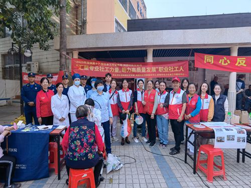 3月22日下午,在清水河街道梅园社区党委的支持下,深圳市北斗社会工作服务中心驻梅园社区党群服务中心联合清水河消防所、清水河街道禁毒办、深圳市边检总站医院、深圳市爱尔眼科医院,深圳农商银行坭岗分行以及社区志愿者共同开展深圳第十八届社会工作宣传周-梅园社区分会场“汇聚专业社工力量.助力高质量发展”职业社工人活动,此次活动旨在提高社区居民对社会工作的知晓度和认可度,展现社会工作的成果和价值,让更多居民了解和支持社会工作,共同推动社会的进步和发展。