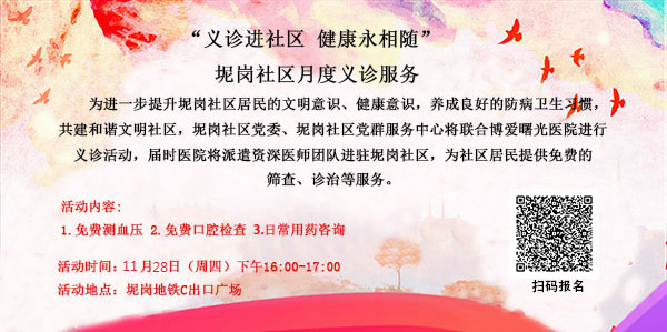 义诊活动请各位扫描图片中的二维码,点击关注深圳智慧党建后报名~