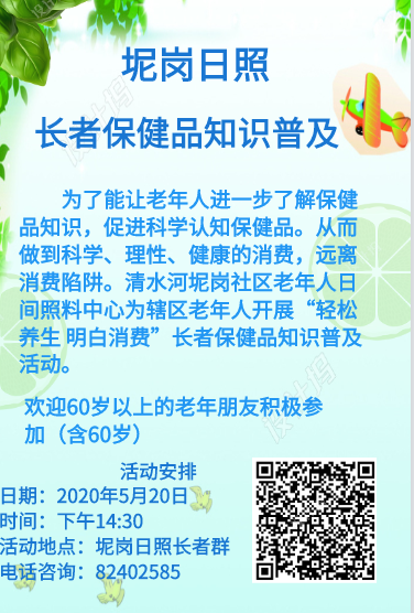 为了能让老年人进一步了解保健品知识。从而做到科学、理性、健康的消费,远离消费陷阱。清水河坭岗社区老年人日间照料中心为辖区老年人开展“轻松养生 明白消费 ”长者保健品知识普及活动。