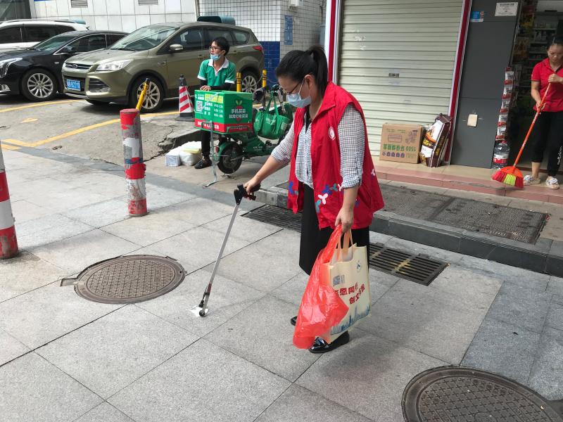 9月23日上午,坭岗社区党委组织工作人员、义工、党员志愿者等沿街清理散落垃圾、整治乱张贴、乱挂晒等不文明行为。