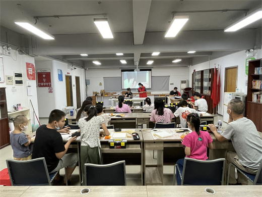 坭岗社区邀请辖区居民担任公益篆刻老师,为青少年开展篆刻学习。整个课程共分为五节,围绕篆书练习、印搞设计、反写上石、刀法练习以及刻制、刻边款、钤印、拓边款,完成篆刻作品等展开教学。在第一节课程中,篆刻老师向青少年介绍了篆刻的历史和在印石上刻字的基本方法和技巧,带领大家进行篆书练习和印搞设计,并进行了细致耐心的示范。在学习过程中,老师对大家进行一对一的指导,让大家更快地掌握篆书练习和印搞设计的基本要领及注意事项,引导青少年了解中国印的文化之美、汉字之美,提升对文化艺术的鉴赏能力,培养实践动手能力和磨练耐心品行。