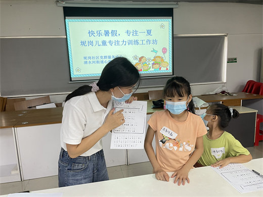 近日,为提高社区儿童青少年的专注力,帮助社区儿童青少年高效学习、快乐成长,扩展他们未来的成长空间,在坭岗社区党委的支持下,坭岗社区党群服务中心联合清水河街道心理服务站组织开展了“快乐暑假,专注一夏”—坭岗儿童专注力训练工作坊。