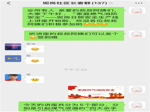 众所周知,燃气为方便市民的生活做出了巨大贡献,但仍有不少市民对如何安全使用燃气一知半解。且燃气若使用不当,很容易造成爆炸和中毒事件,为了提升社区老人对家庭燃气安全的认识,增强社区长者们安全防范意识,8月17号下午,坭岗社区老年人日间照料中心为社区长者们在线上开展了“家庭燃气消防安全”——坭岗日照安全生产讲座。