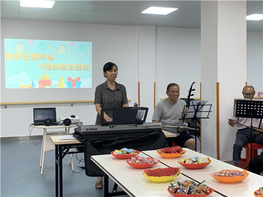 八月的最后一天,坭岗社区老年人日间照料中心为在8月份生日的长者们开展一场欢乐的长者生日会,本次活动一共邀请了四位寿星,吸引了三十多位长者共同参与。