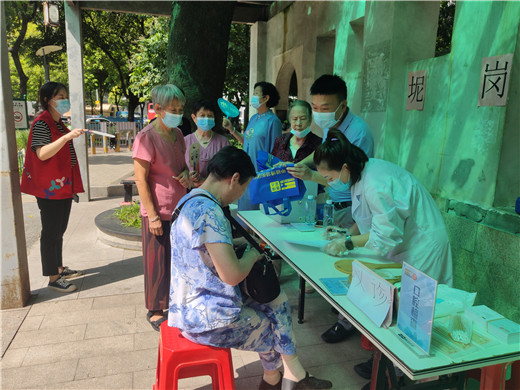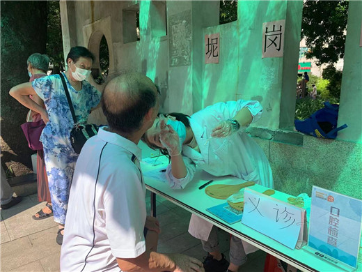 本次义诊活动采用户外形式开展。炎炎夏日也阻挡不了叔叔阿姨的热情,活动开始前长者们自觉的排起长队,场面非常热闹。活动现场,医生们针对老年人常见的口腔问题及保健,做了现场专题介绍,向长者们普及口腔健康知识以及宣讲安全就医、正确就医等知识。同时,医生们还认真专注地为前来的长者们检查牙齿,耐心地解答他们提出的问题,最后,还向长者们发放口腔保健宣传小册子以及小礼品,提醒长者们注意口腔保健的细节问题。