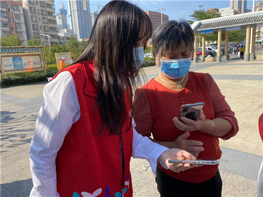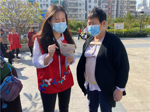工作人员到达现场布置场地,摆放宣传资料及义诊设施,然后向过往及在广场上闲聊、休息的长者宣传坭岗日照中心及此次义诊活动。不一会儿,桌前便围满了长者。工作人员一边向长者们介绍此次义诊有检查血压、维生素检测、健康咨询等服务,还一边向长者们发放坭岗日照中心宣传单页,介绍中心位置、近期中心开展的活动与解答长者的疑问,还向长者发出来日照中心参观体验的邀请。有位阿姨参加完义诊活动,还追着工作人员问下一次开义诊活动的时间,工作人员便邀请阿姨扫码加入我们的长者微信群,告诉她平时可以多关注群内信息,活动通知都是第一时间发到群内,阿姨看到感兴趣的活动可以直接报名参与。