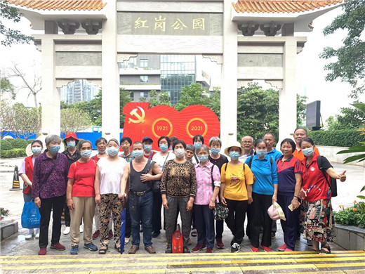 一大早,叔叔阿姨们就在日照中心集合,期待着活动的开始。工作人员讲完途中注意事项、分发完物资补给后,活动正式拉开帷幕。本次活动路线是从日照中心出发徒步前往红岗公园,再顺着公园绕一圈,最后抵达西出口,全程约5公里。