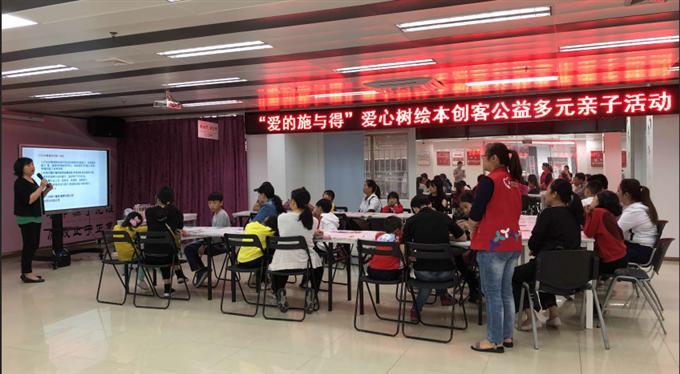 为了培养训练儿童综合性思维能力,和提升爱学习的内动力。在清水河社区党委的支持下,东西方驻清水河社区党群服务中心与深圳市八只脚丫教育公益事业发展中心共同合作,于2019年4月13日下午开展“爱的施与得”爱心树绘本创客公益多元亲子活动。