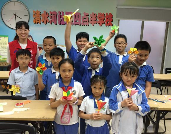 为提升孩子学习质量,增强其动手能力,丰富课余生活。在清水河社区党委的领导下,东西方驻清水河社区党群服务中心社工于2019年4月26日下午在四点半课堂开展樱花折纸手工活动。