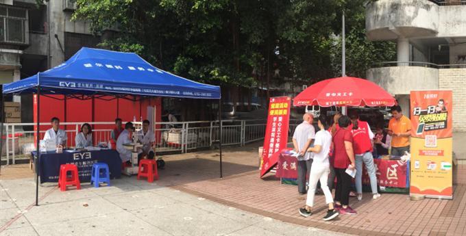 义诊进社区,健康伴您行。为提高社区居民的健康知识水平,增强居民的健康保护意识,为弘扬中华名族“敬老、尊老、助老”的传统美德,营造和谐社会的良好氛围。在清水河社区党委支持下,深圳市东西方社工服务社驻清水河社区党群服务中心联合爱尔眼科、中国联通在清水河生活小区广场开展了“关爱居民,健康同行”爱心义诊便民活动,此次活动吸引了80余名居民参与。