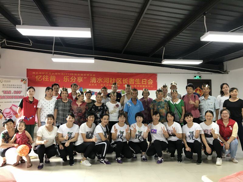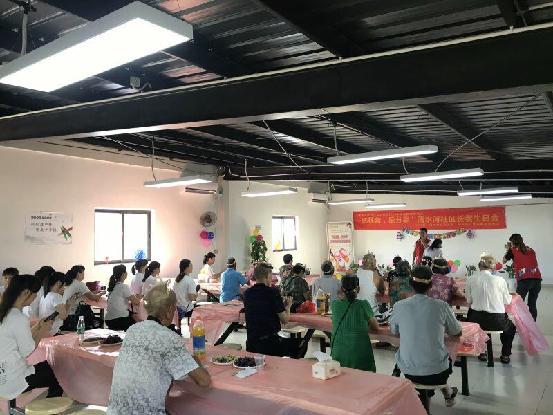 罗湖家园网讯:生日,对于每个人来说都是一个很特别的日子。为丰富长者生活,让长者感受来自他人的关怀,2019年9月11日下午,由清水河社区党委、深圳市东西方社工服务社驻清水河社区党群服务中心主办的2019年民生微实事项目“忆往昔,乐分享”清水河社区长者生日会第四场在进智公司2楼饭堂顺利举行,。此次活动共有50名人参与,一起欢聚一堂。