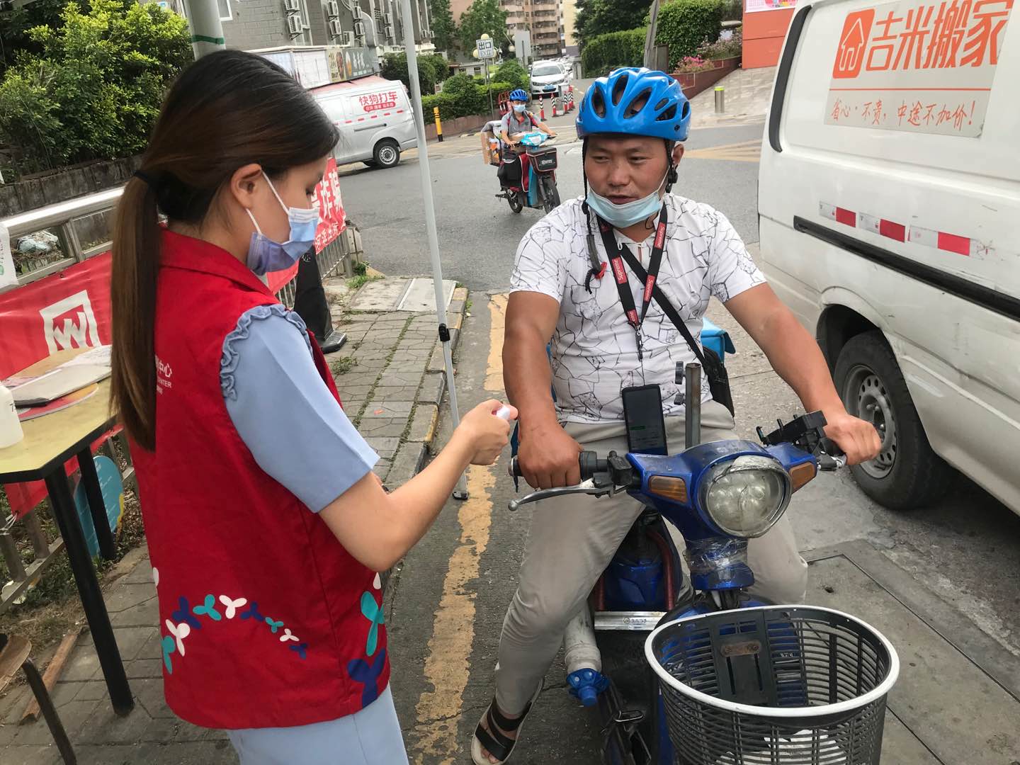 讯:5月7日,社工在社区路口卡点参与社区疫情防控工作,切实保卫居民健康安全。