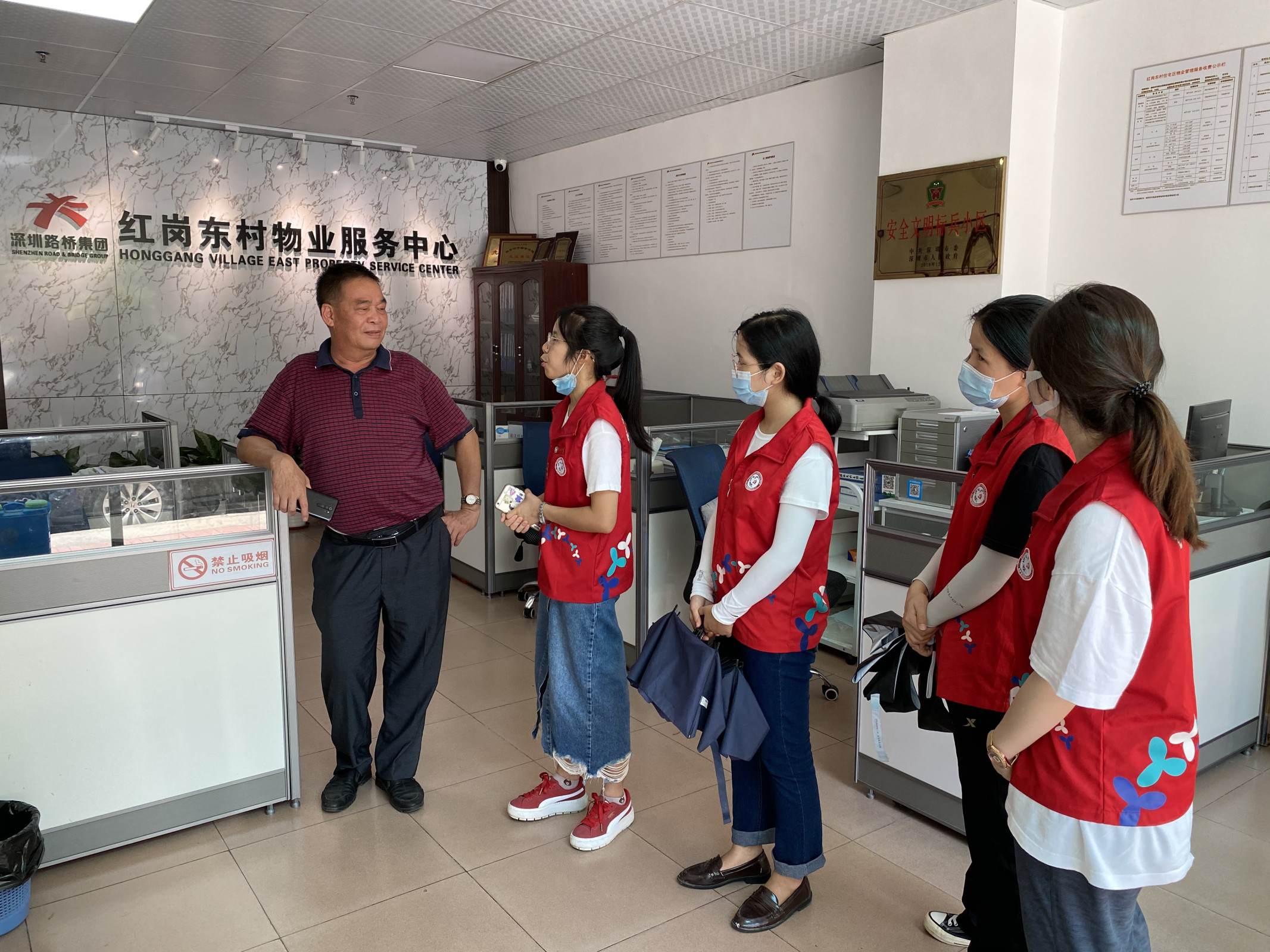 今天一共走访了鹿岭苑、路桥大厦、华天苑、宝明花园、红岗花园、红岗东村、翠雅居共7个管理处。社工们每到一个社区管理处,管理处主任都非常热情的接待社工,庞主任介绍从2020年7月1日开始清水河社区党群服务中心由深圳市社联社工服务中心机构为社区居民服务,以后开展活动希望和管理处能多多合作。