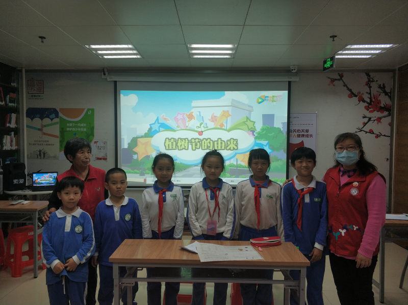 活动中,社工播放了简洁易懂植树节的动画片,介绍了植树节的由来和意义。通过短片提升孩子环保意识,植物与人类息息相关,保护森林,增种树木,每一棵大树的生长都对人类社会有相当大的积极作用,成群的树林能对生态系统起到很好的保护作用。