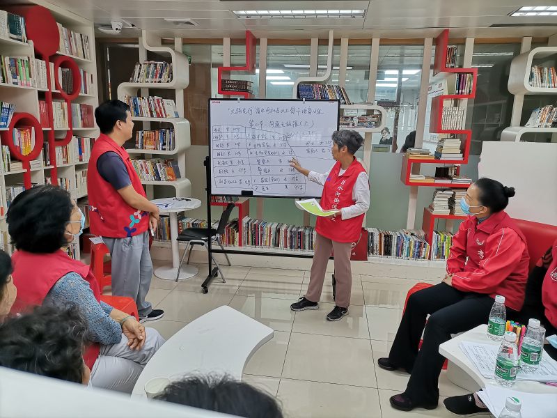 之后,社工带领大家一起讨论规划义工队伍发展,将小组取得的成效及时转化为下一步行动。组员各抒己见,有的建议通过设置一些激励制度来提升义工伙伴们的积极性;有的建议成立护老义工队,每季度为辖区独居老人开展定期探访活动,为她们送去关爱和帮助。最后,大家详细讨论长者关爱探访行动方案,待时机成熟后将正式行动。