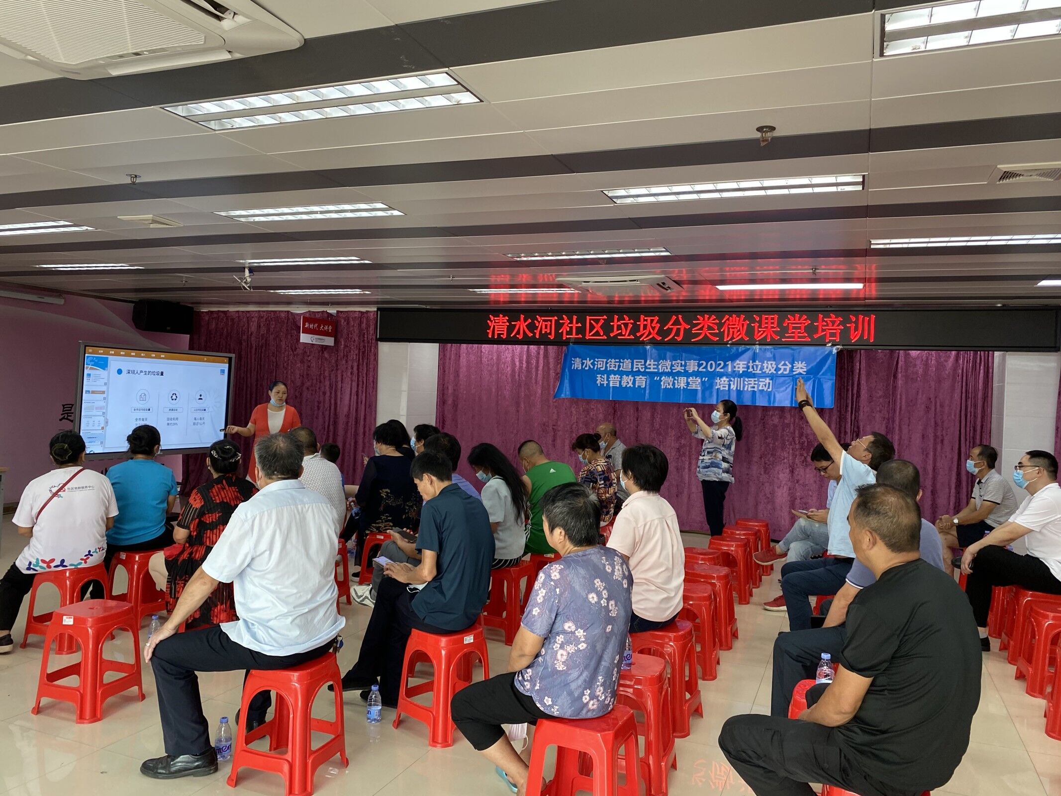 当下人们现在面临着日益增长的垃圾产量和环境恶化的局面,如何通过垃圾分类的管理,最大限度地实施垃圾资源的充分利用,减少垃圾处理的数量,改善我们的生存环境,是社会共同关注的迫切问题。为让居民树立垃圾分类的环保意识,进而积极地参与到垃圾分类的行动中,7月13日上午,清水河社区在党委的支持下,开展了垃圾分类科普教育微课堂培训,通过PPT详细讲解了生活垃圾的正确投放方式以及日常生活中垃圾分类的小知识小技巧。通过细致的讲解,居民们对垃圾分类有了更深层次的了解,并表示今后会养成垃圾分类的好习惯,积极参与到垃圾分类的行动中来,为建设美丽家园贡献自己的力量。