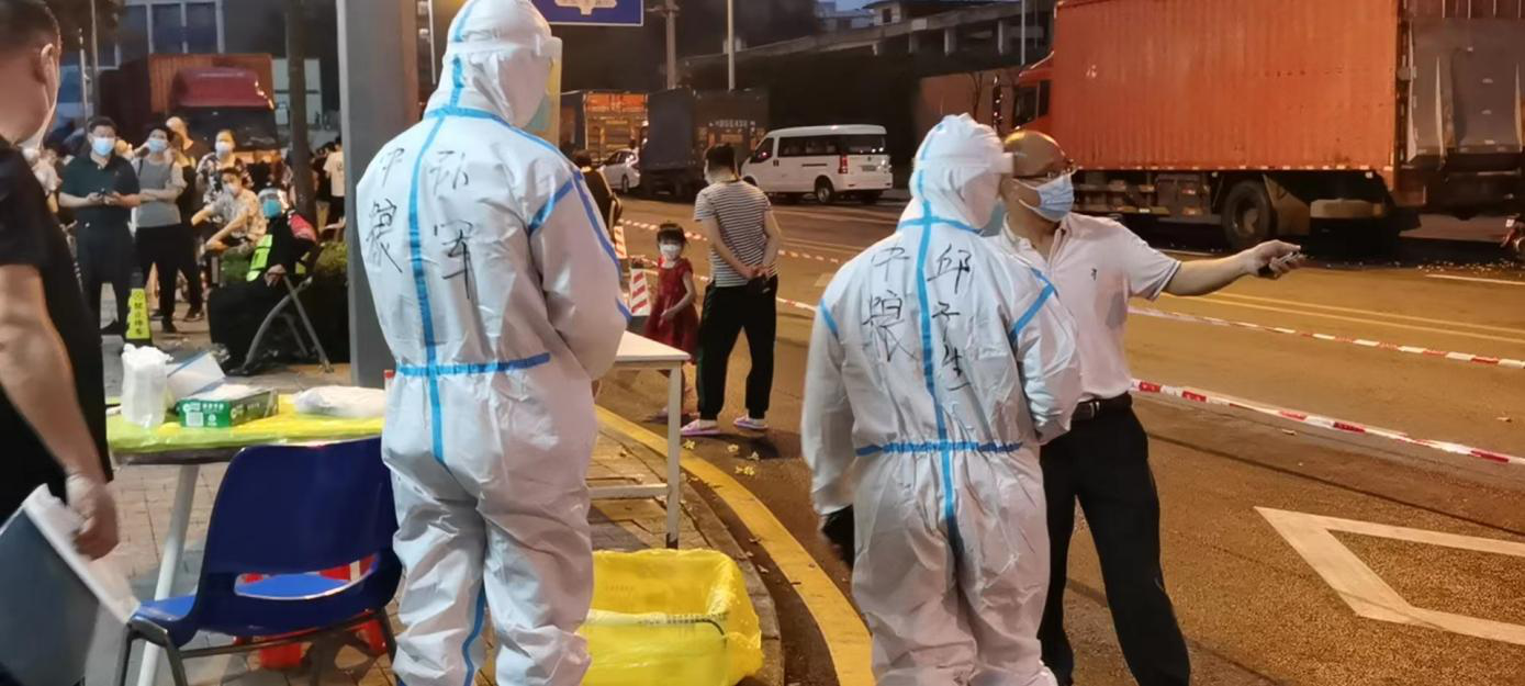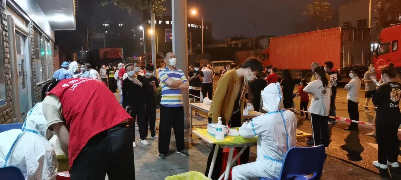 现场,医护人员及志愿者们规范穿着防护服,全程佩戴口罩和面罩;社区志愿者们在各个点位随时待命,检查健康码、行程码,维持现场秩序;前来采样的居民都做好个人防护,在志愿者们的引导下保持“一米线”距离,依次进行体温检测、信息登记、咽拭子采样,采样结束后从出口离开;其他工作人员做好样本保存、转运和医疗废物处置,整个过程有条不紊、井然有序。