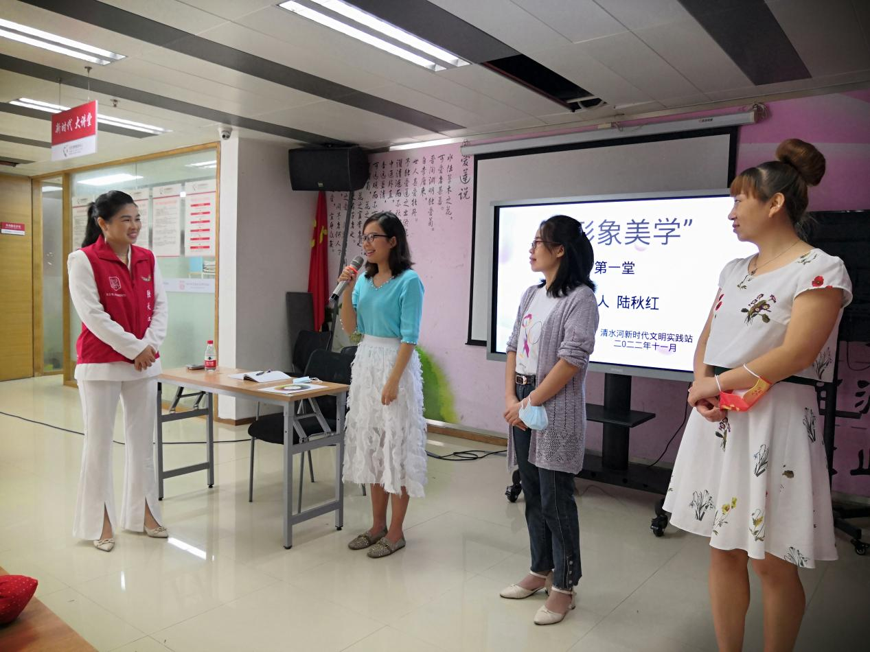 2022年11月13日上午,罗湖区清水河街道清水河社区组织开展了“形象美学”个人形象提升分享活动。活动由清水河社区志愿者和社工自发策划组织,以志愿者自身的技能和心得体会来服务社区,为社区居民服务。活动得到了社区居民的积极参与,活动期间台上台下互动不断。