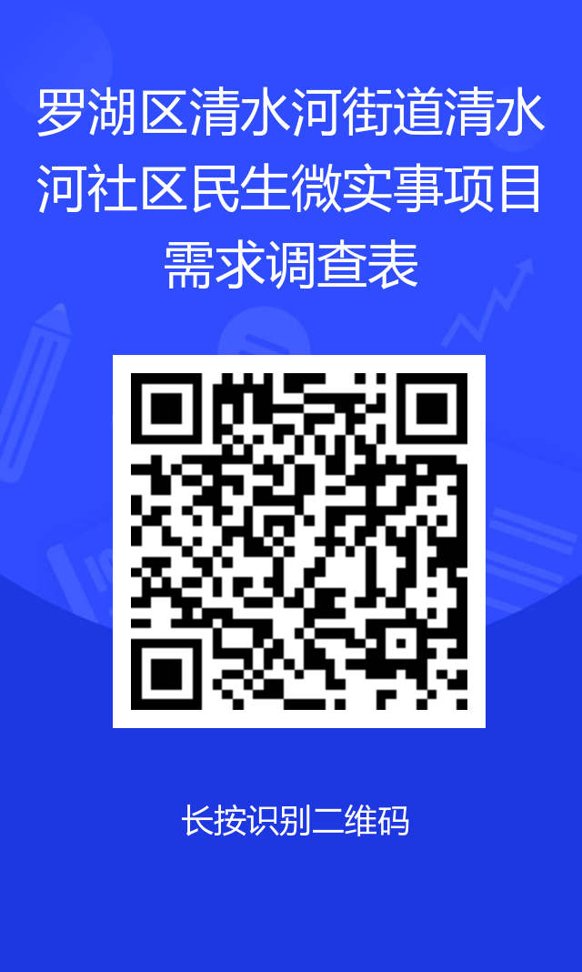 您好!为全面、详细的掌握社区居民对于罗湖区民生微实事项目的意见和建议,及时了解居民的需求和期望,更好地开展针对性的社区服务,罗湖区清水河街道清水河社区特开展需求调查活动,调查结果仅作为项目设计所用,所填信息不对外公布,谢谢合作!