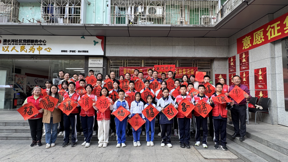 罗湖家园网讯:“红梅傲雪报新岁,喜气洋溢庆丰年”。春节的脚步日益临近,2025年1月17日下午,在清水河社区党委的支持下,清水河社区新时代文明实践站、清水河社区党群服务中心联合罗湖实验学校在清水河社区开展“笔墨探春·书写幸福”手写春联送祝福年俗文化活动。此次活动旨在弘扬中华传统文化,为社区营造出一个积极、欢乐且祥和的春节氛围。