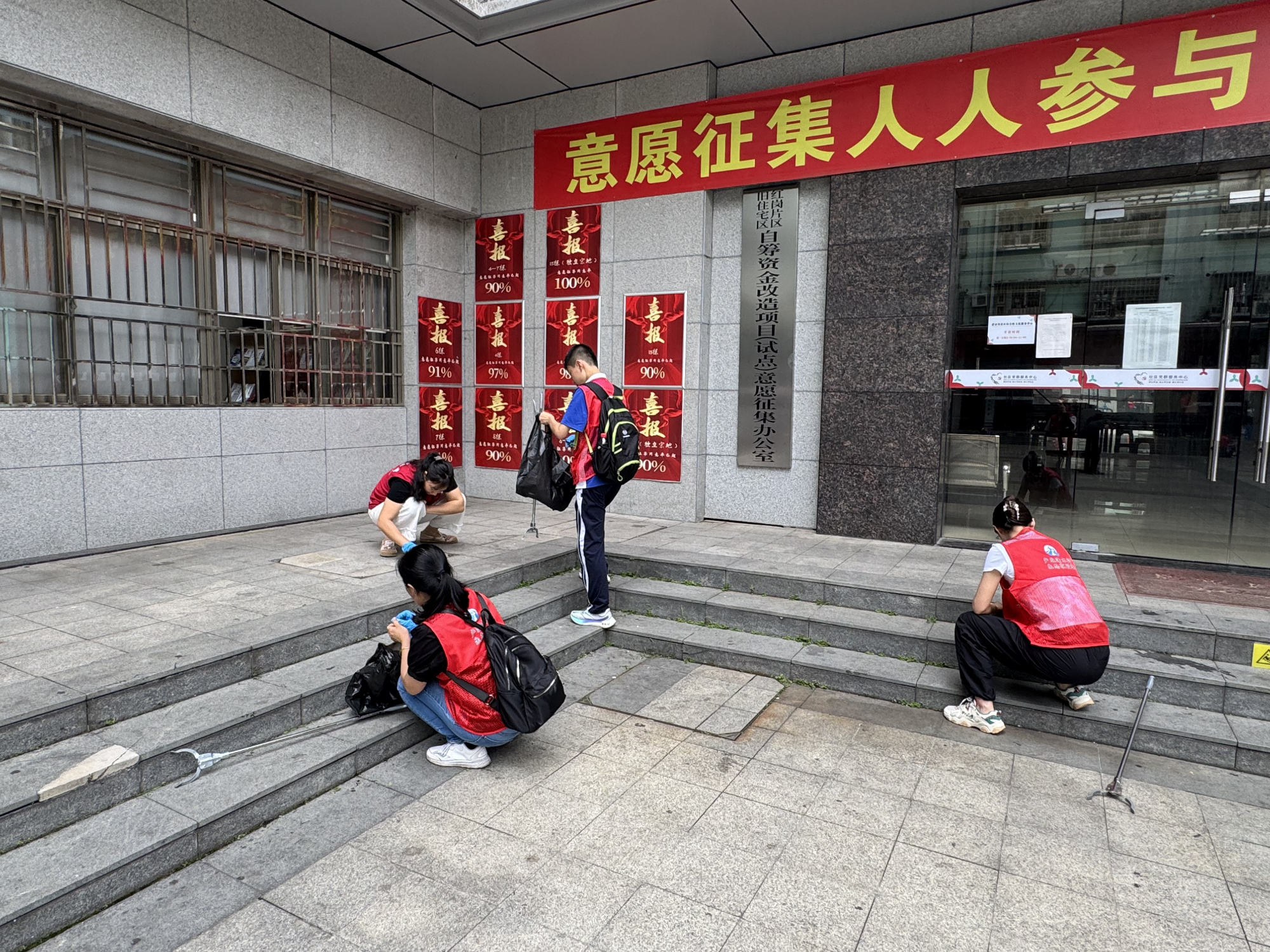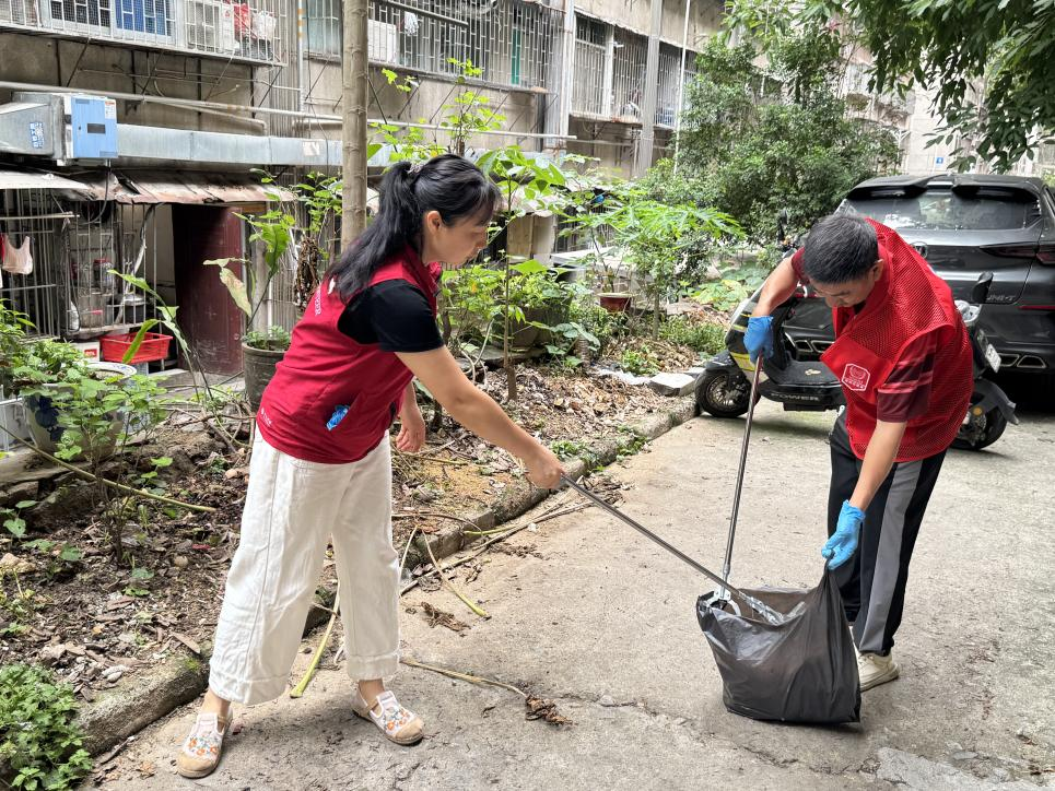 活动中,志愿者们领取清洁工具后分为两组,分别对社区主干道、公共活动区域及周边卫生死角展开清理。活动中,志愿者们手持扫帚、夹钳、垃圾袋等工具,分工明确、配合默契。他们清理路面烟头、落叶及杂物,铲除杂草,并对绿化带内的塑料袋、烟蒂等垃圾进行细致清扫。经过大家的共同努力,社区环境焕然一新。