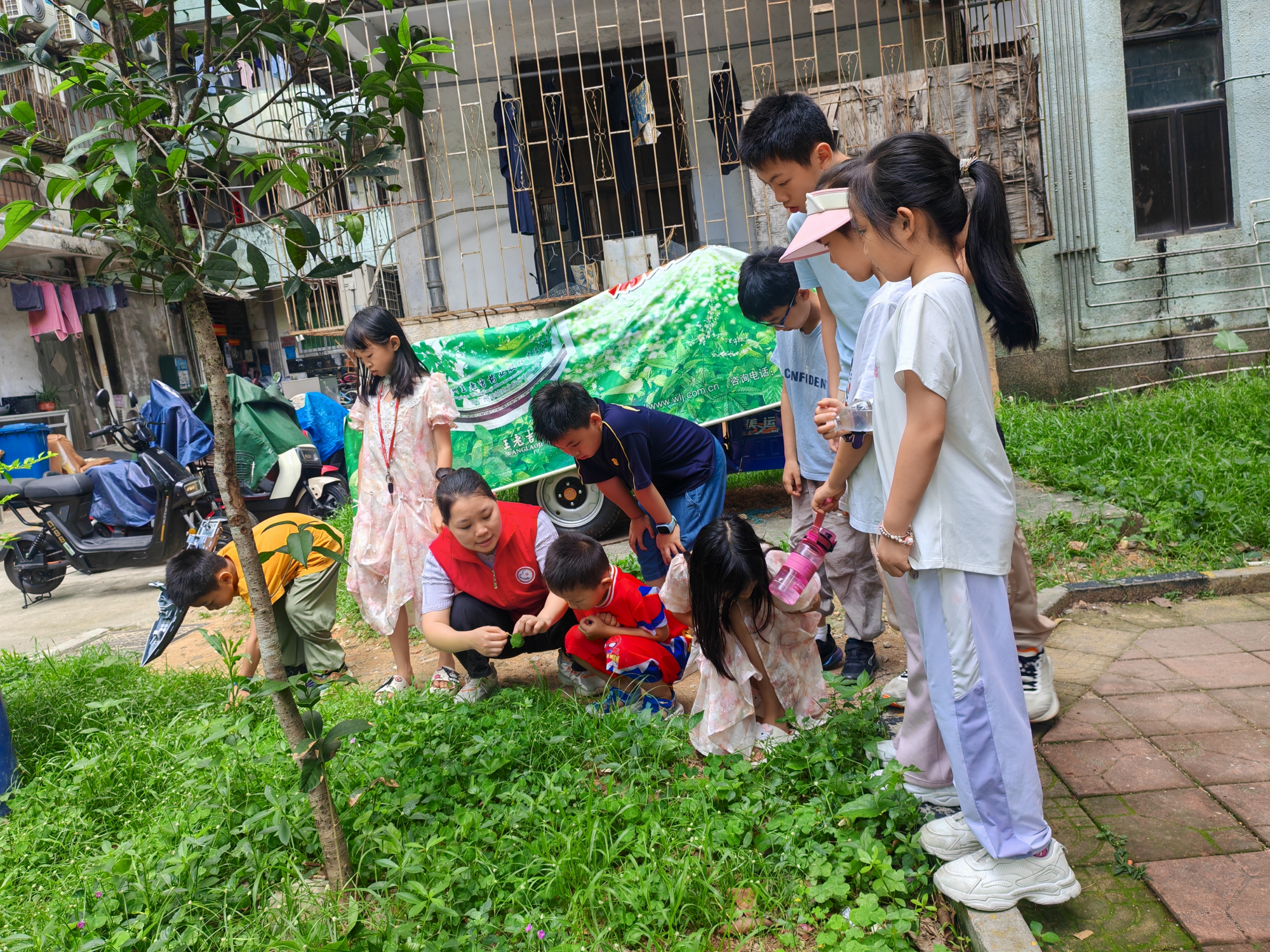 随后,孩子们化身“小小植物侦探”,在社工的带领下走进小区公园,近距离观察各类植物,学习辨识不同植物的种类和特性。孩子们一边探索,一边记录,在实践中感受大自然的奇妙与生命的多样性。