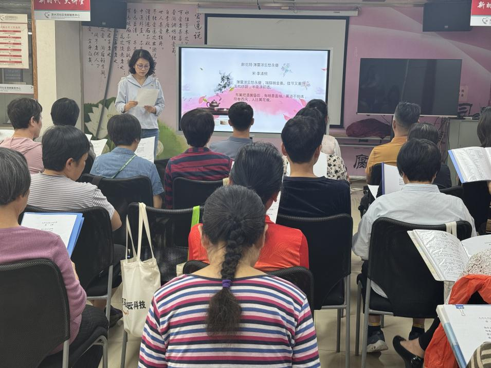 活动中,社工详细介绍了重阳节的历史由来,从古老的祭天祈福到现代的敬老节日,生动讲述了节日的文化演变。同时,围绕登高、赏菊、佩茱萸、饮菊花酒、吃重阳糕等传统习俗,居民们积极参与互动,分享家庭重阳故事,增进了邻里感情,增强了居民对传统文化的认同与热爱。深圳市党代表王蕴也在活动中带领社区居民共同朗诵经典诗词,在琅琅书声中感受重阳节的思亲之情与文化韵味。党代表的带头参与,不仅提升了活动的文化品位,更彰显了基层党组织对传统文化传承的重视。