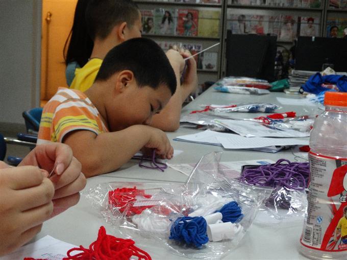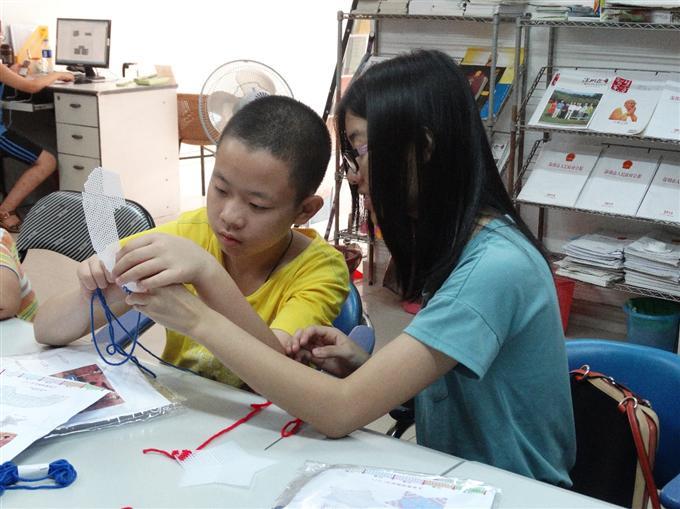 在活动中,社工教大家做了立体绣,包括纸巾盒、收纳盒以及其他装饰品,孩子们的参与积极性很高,而且大部分是男孩子,他们都很认真、细心。稍微大一些的女孩子还不时地帮助稍微小一些的男孩子做指导。立体绣不仅锻炼孩子们的手工能力,在作品的制作过程中慢慢找到规律,获得内心的满足感。