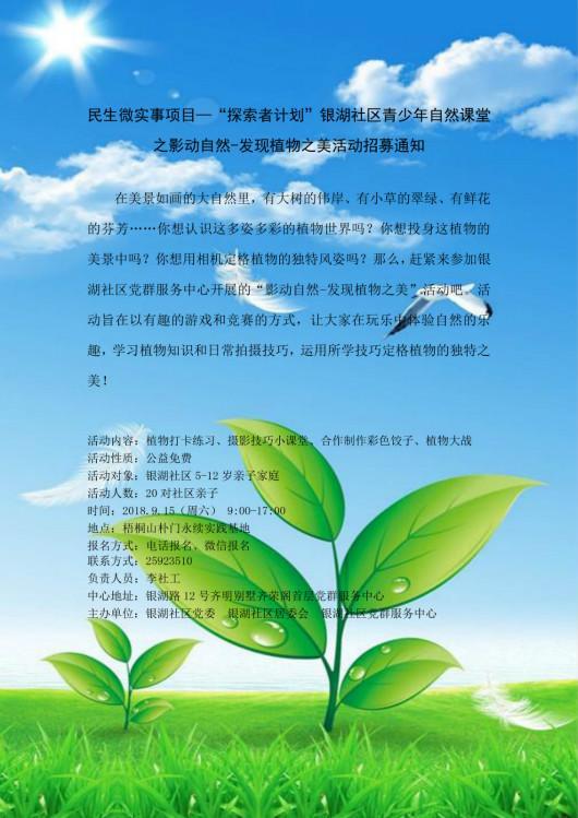【东西方】民生微实事项目:“探索者计划”银湖社区青少年自然课堂之影动自然——发现植物之美活动招募通知