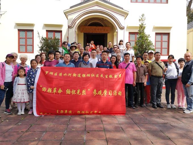 近日,银湖社区开展“回顾革命、缅怀先烈”爱国教育活动,由银湖社区党委组织50多名社区党员、居民一同前往东江纵队司令部旧址参观学习,回顾革命路线,缅怀革命先烈。该活动旨在让社区党员、居民更深刻的了解深圳发展的革命历史,回顾东江纵队当年的革命路线。