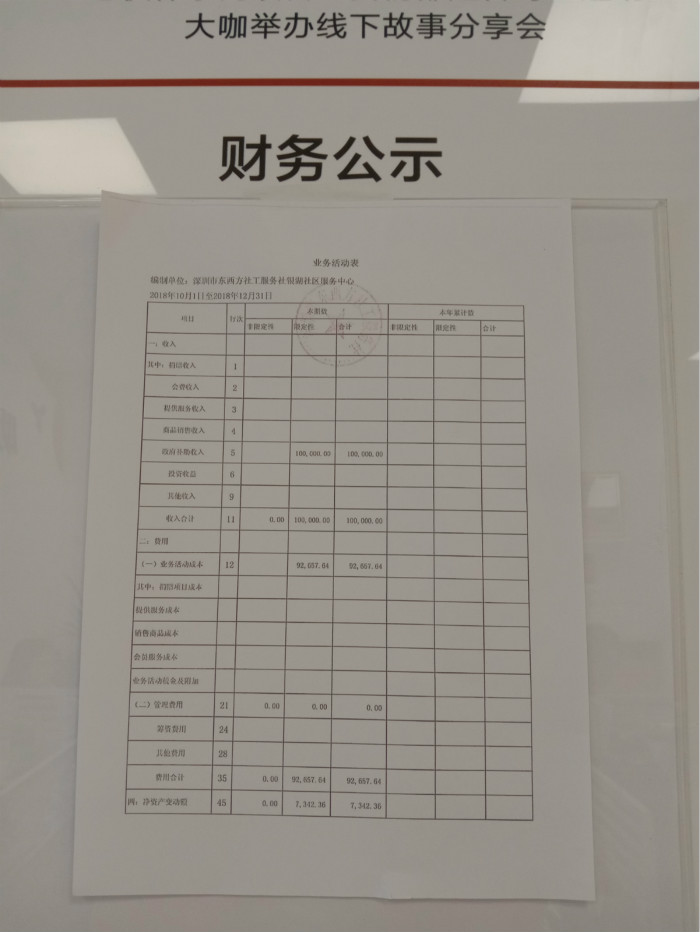 2018年第四季度财务公示